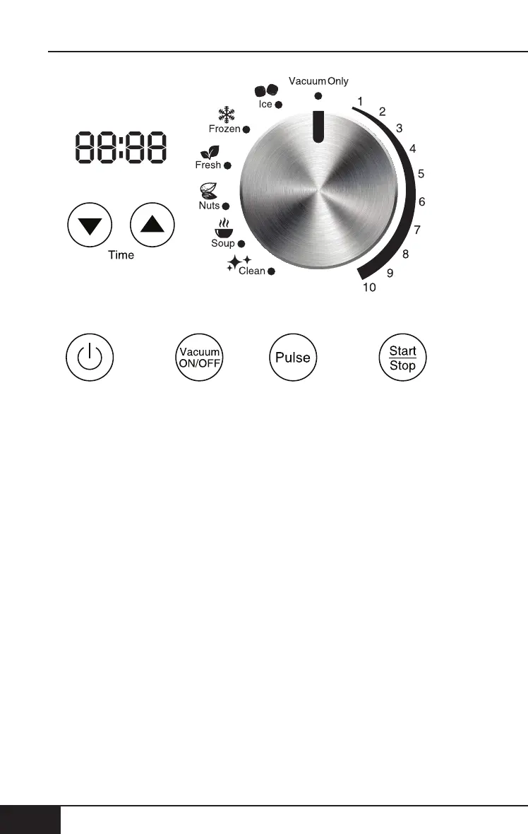speed settings between 1 and 10. Adjust to desired time then press