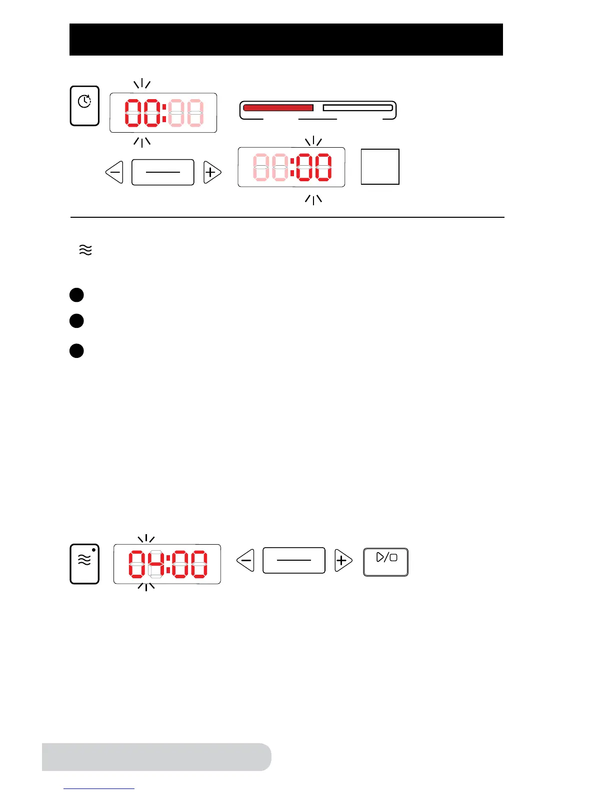 Press “+” or “-” to increase or decrease the time. See “hours/minutes”