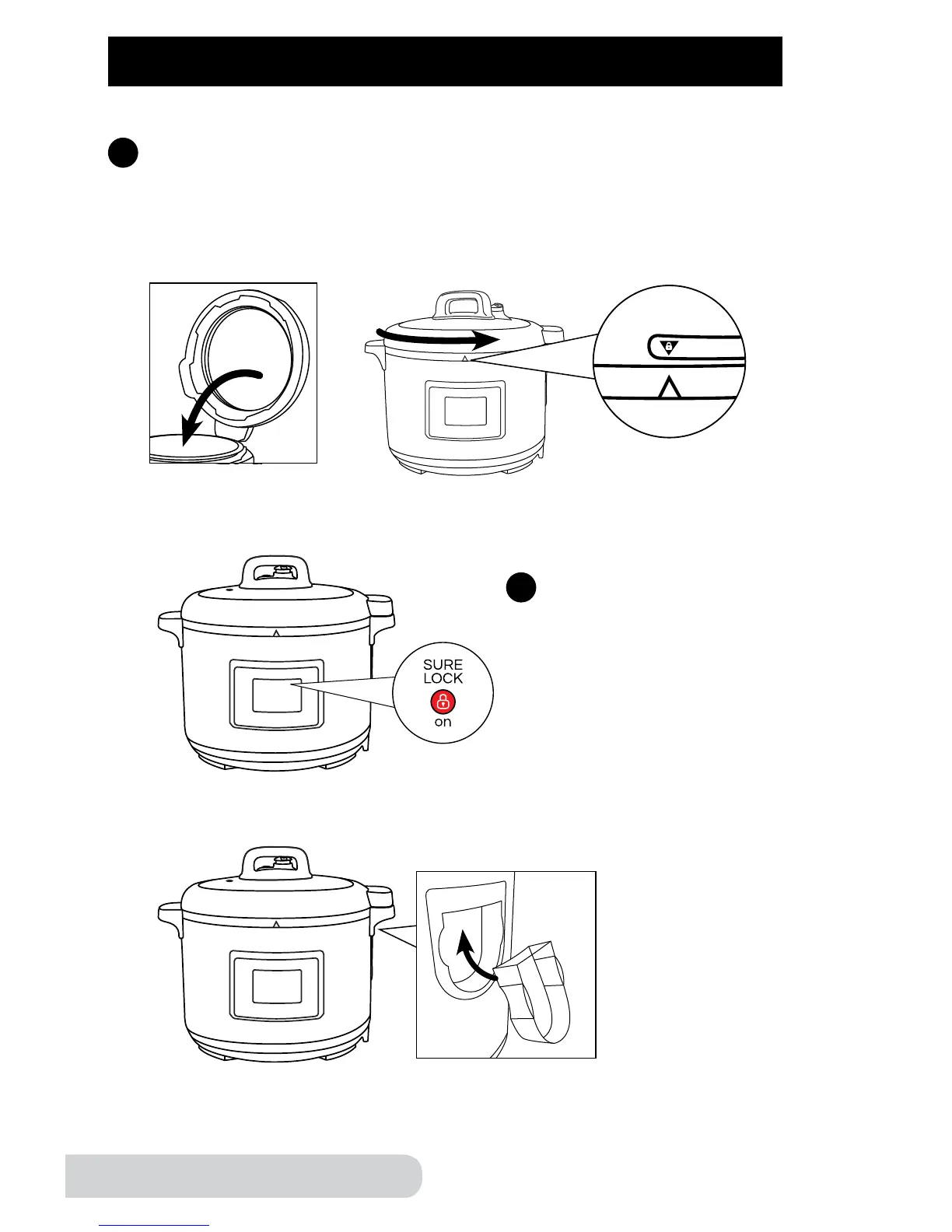 • Sujete la tapa por el mango, baje la tapa y gírela en sentido horario para