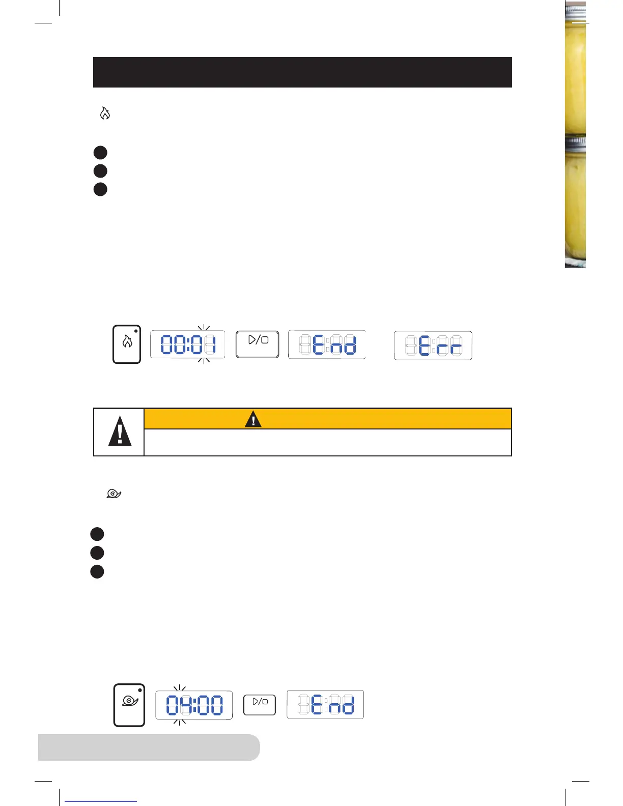 • Do not close the Lid when using “sear” function. "Err" will be displayed