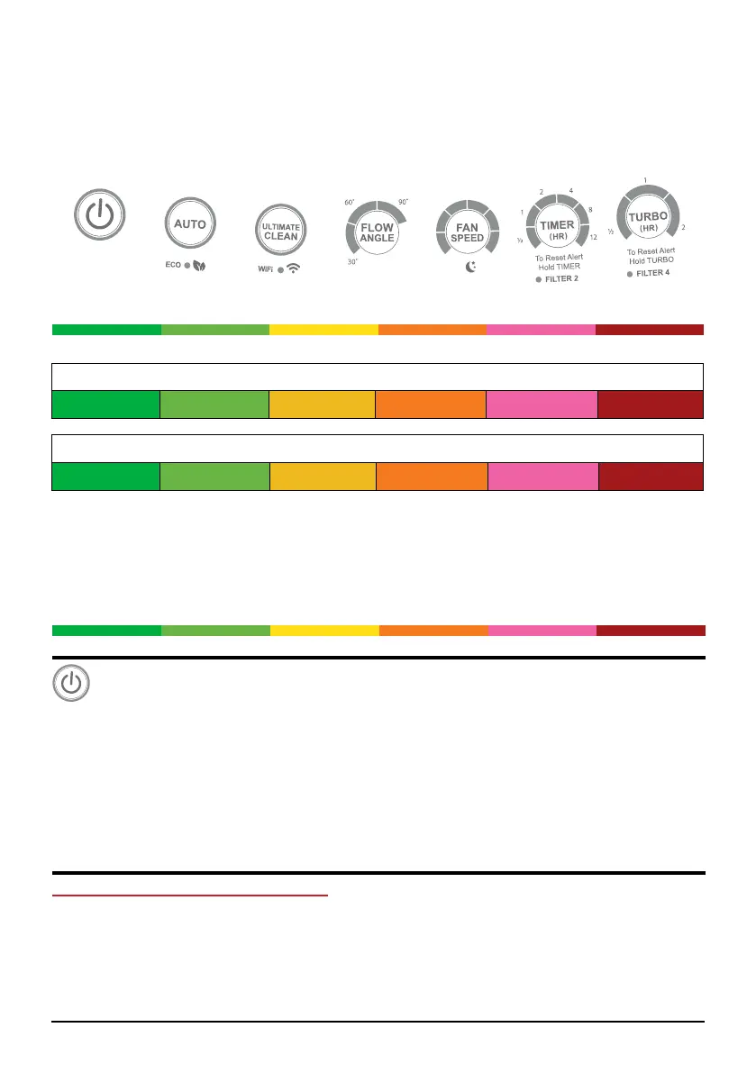 The OxyPure will display the Air/Odor quality from Clean to Dirty as represented below. If