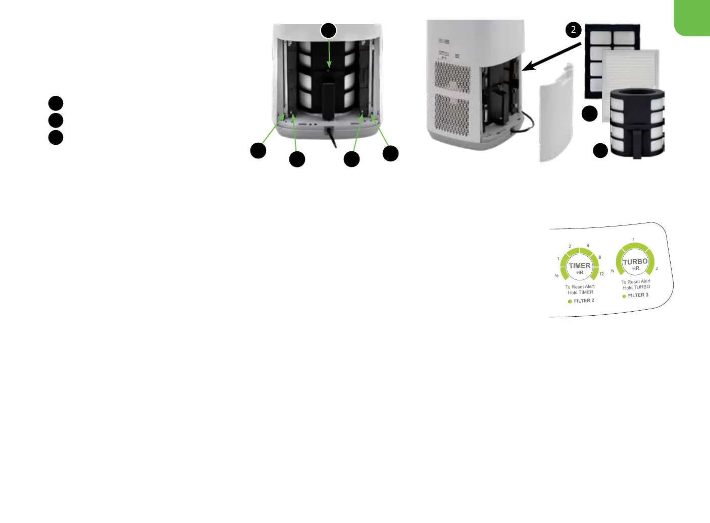 TURBO for 2 seconds until a beep is heard to reset the Filter Indicator for Filter 3.