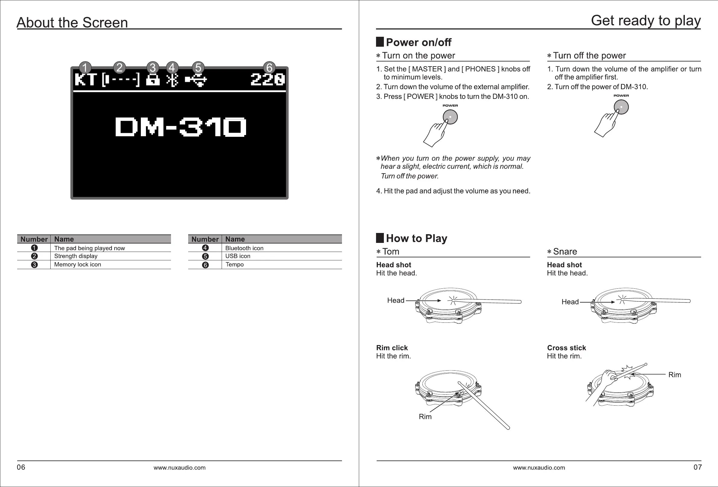 nux DM-310 - About the Screen; Get Ready to Play; Power On;Off; How to Play