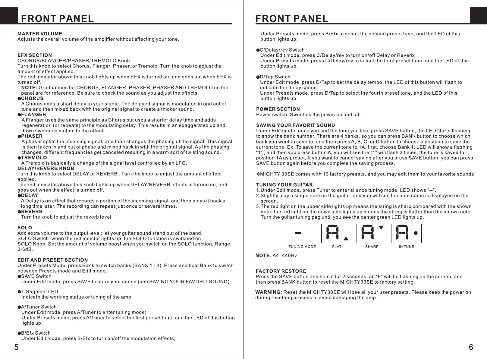 nux MIGHTY30SE - Master Volume; EPX Section; Solo; Edit and Preset Section