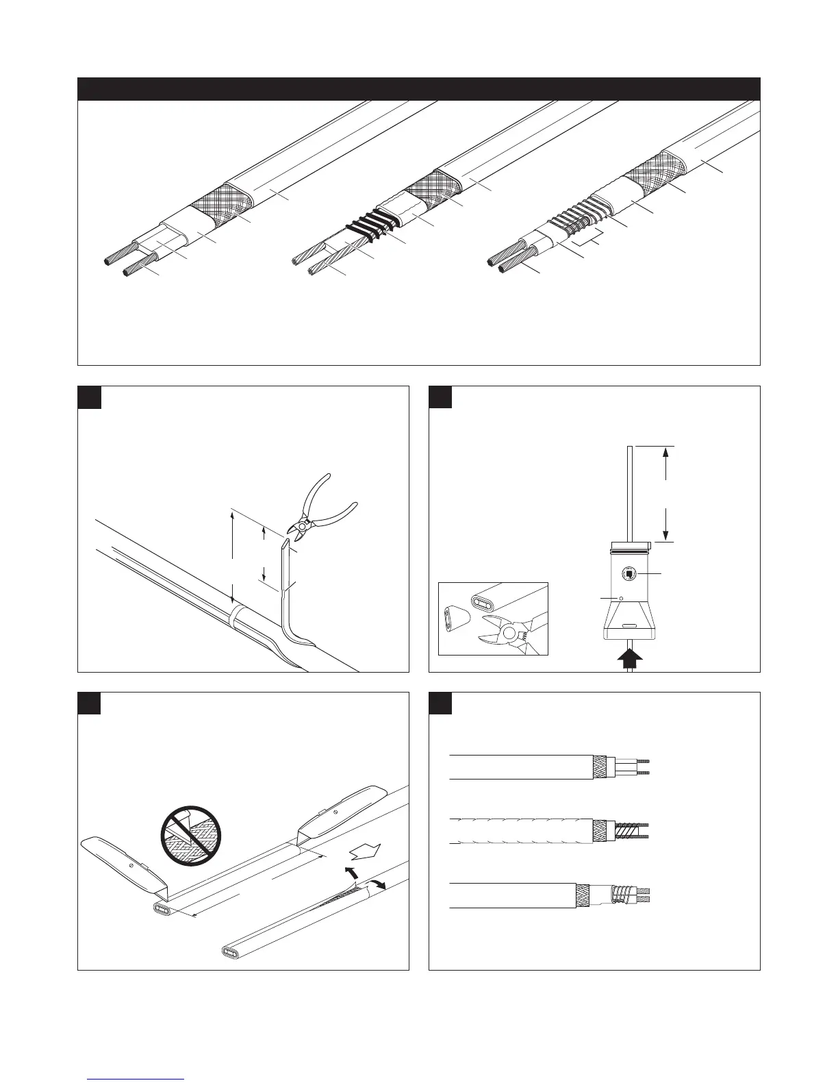 • Bend heating cable to break jacket at score, then peel