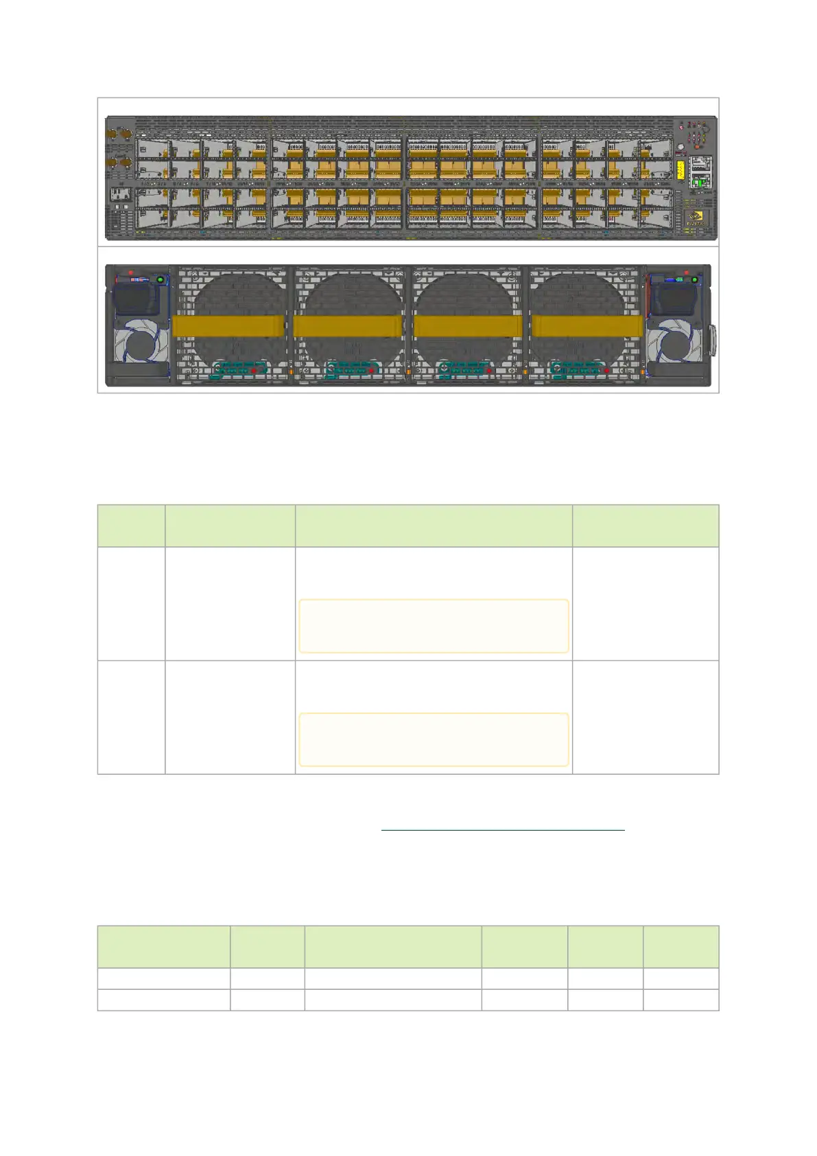 The table below lists the various management interfaces, PSUs and fans per system model.