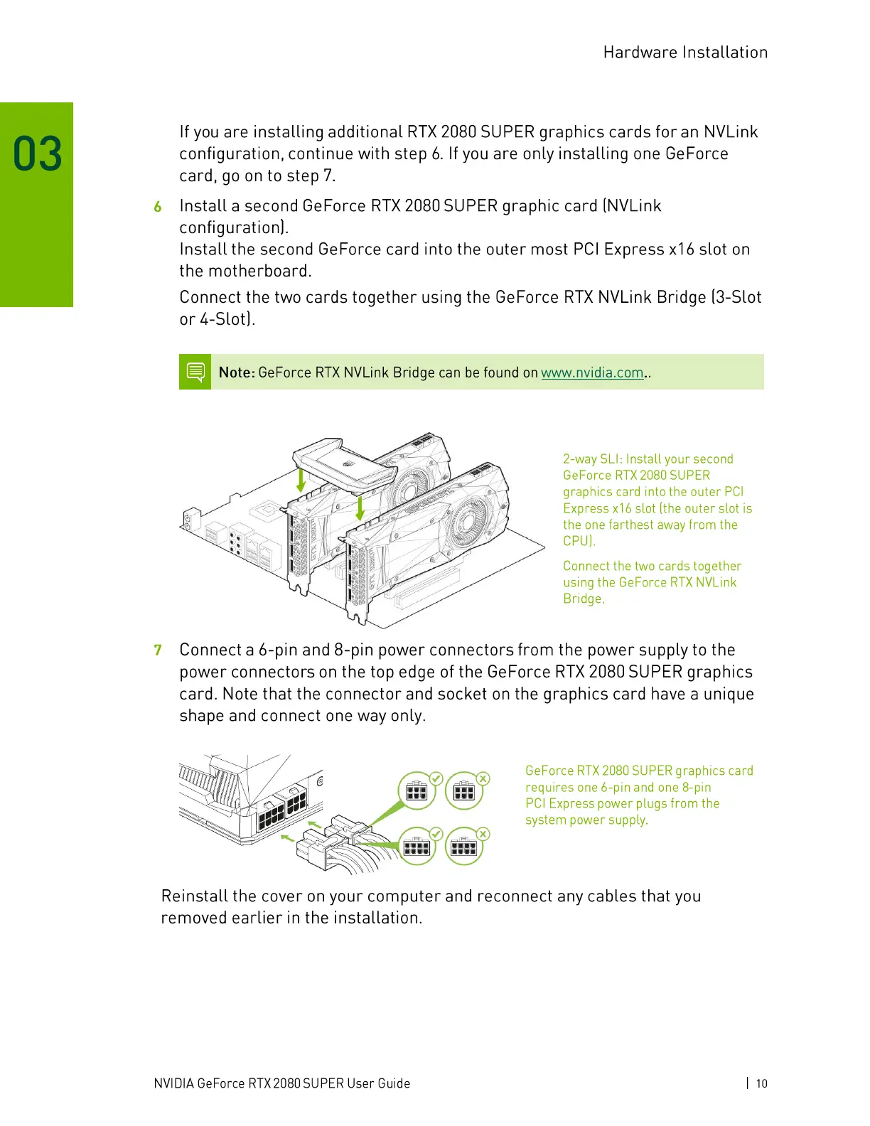 If you are installing additional RTX 2080 SUPER graphics cards for an NVLink