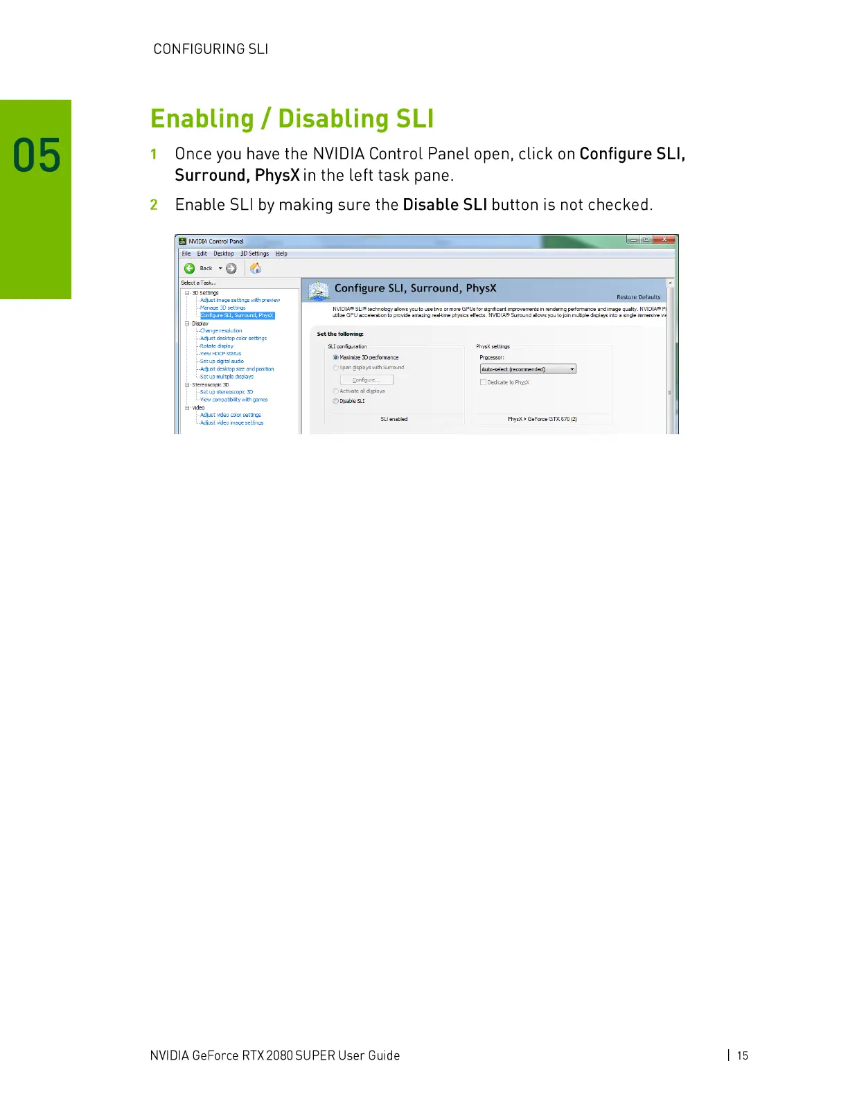 Configure SLI, Surround, PhysX