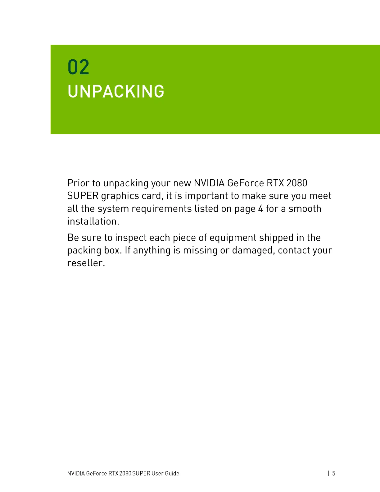 Prior to unpacking your new NVIDIA GeForce RTX 2080