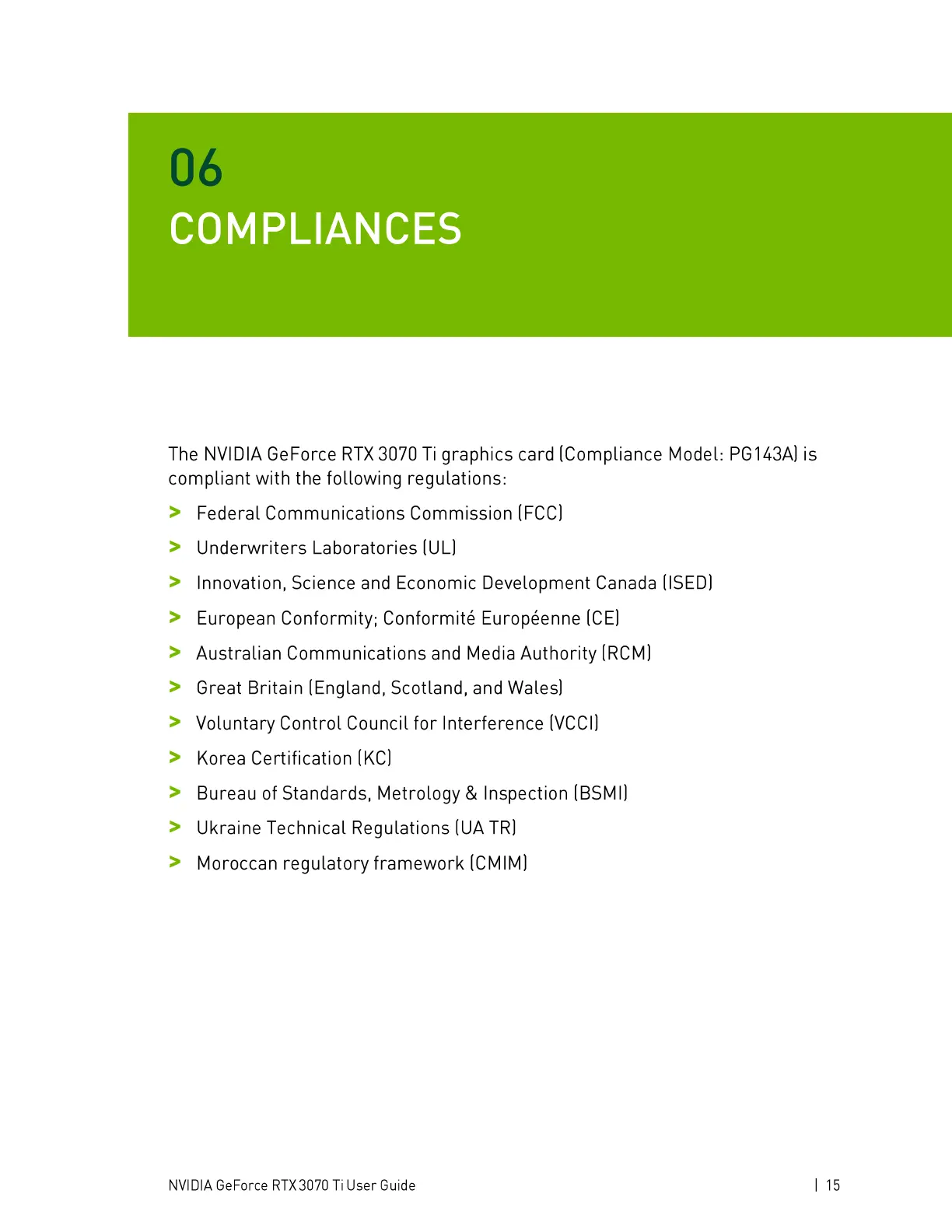 The NVIDIA GeForce RTX 3070 Ti graphics card (Compliance Model: PG143A)is