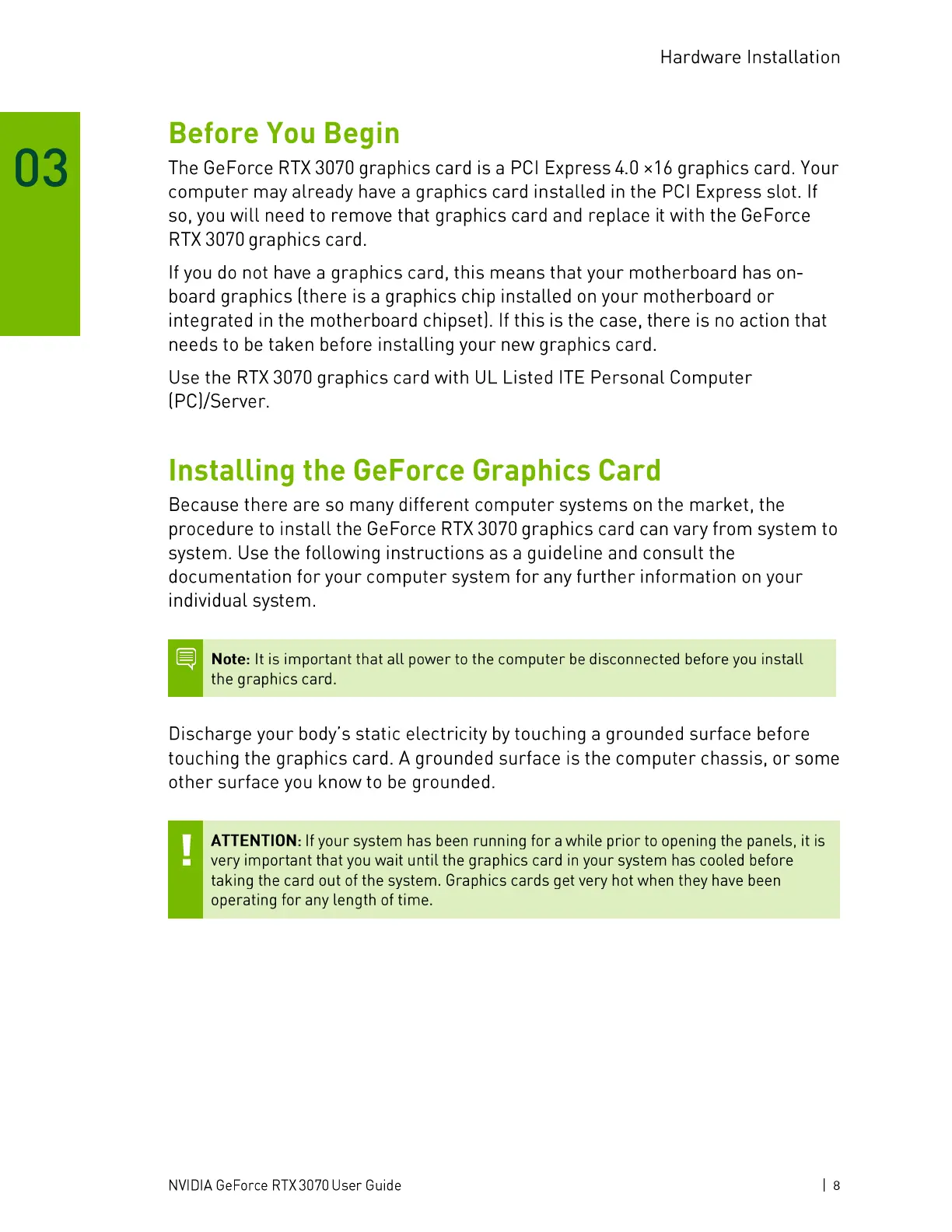 NVIDIA GeForce RTX 3070 User Guide