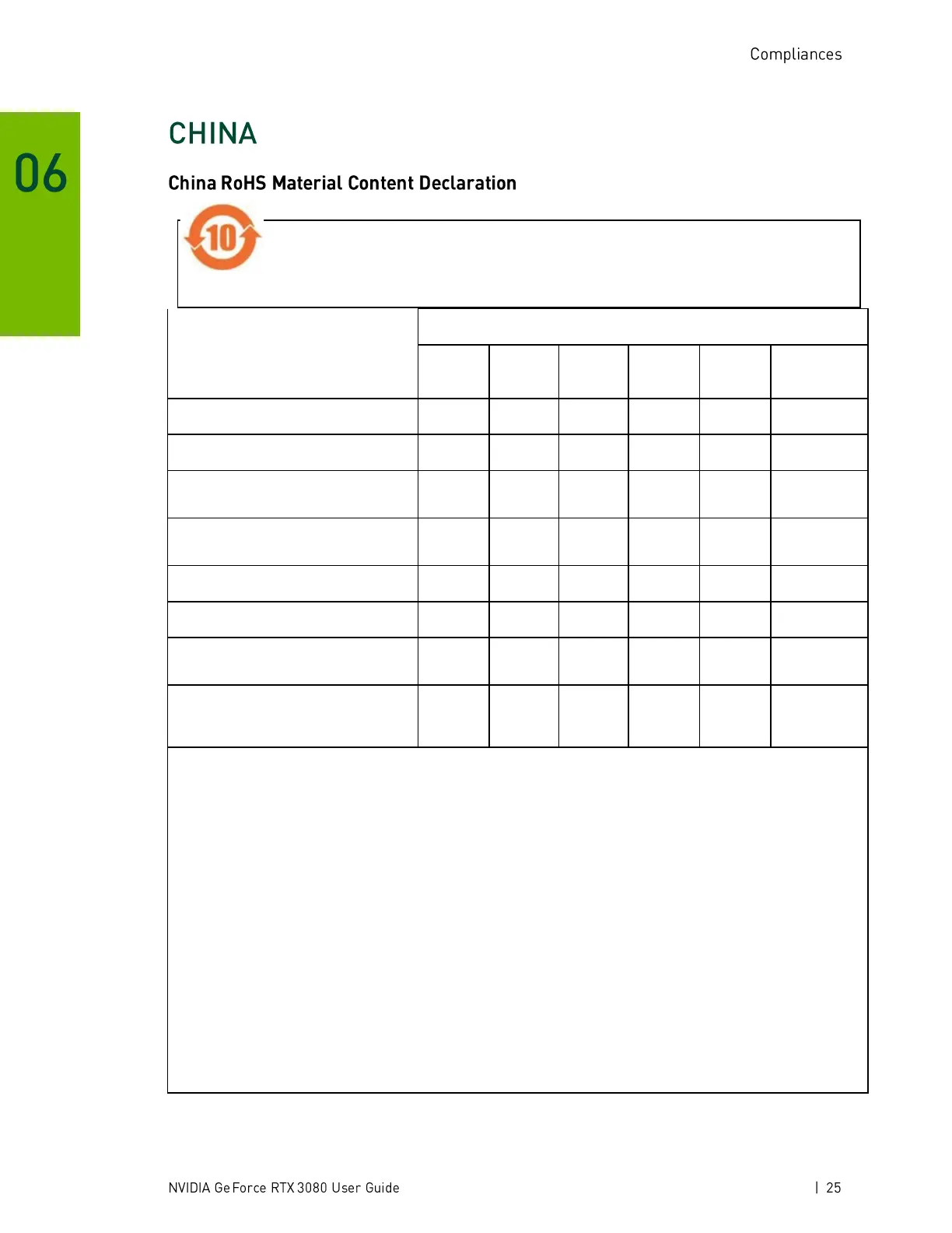 O:表示该有害物质在该部件所有均质材料中的含量均在 GB/T 26572 标准规定的限量要求以下。