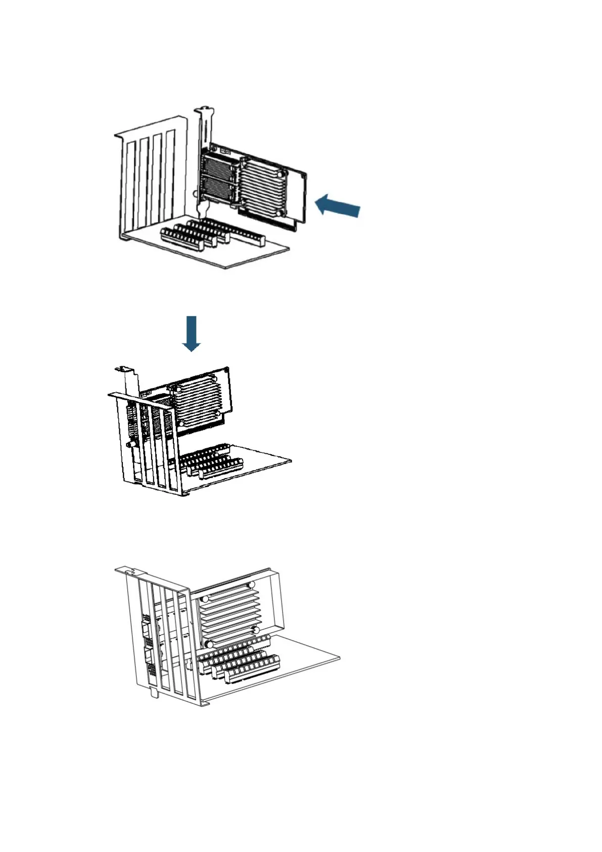 Applying even pressure at both corners of the card, insert the adapter card into the PCI Express
