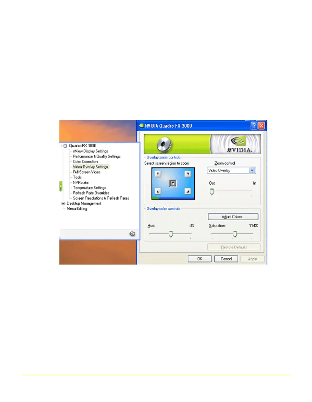 2 Click Video Overlay Settings from the NVIDIA display menu to open the Video