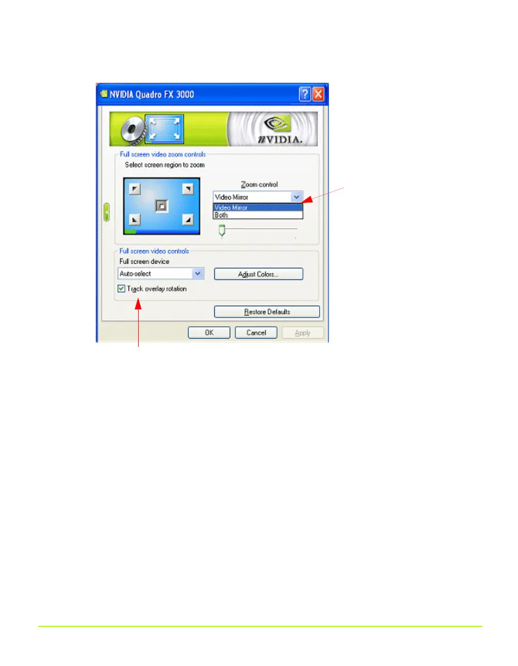 specified on the NVRotate page for the video overlay on the primary display