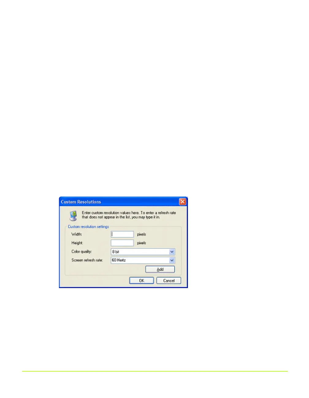 2 Enter the pixel settings for the resolution you want to add in the Width and
