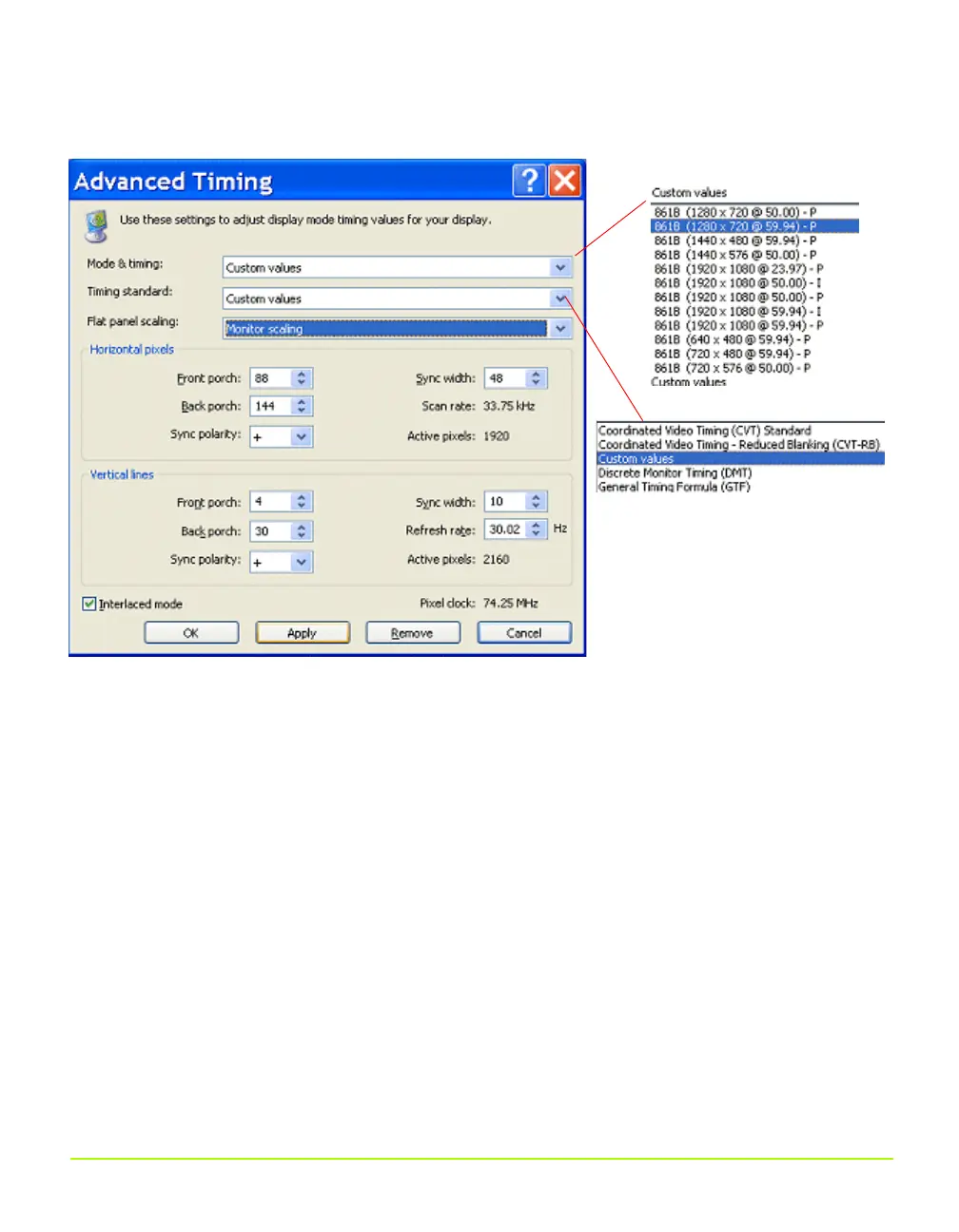 Advanced Timing — Custom Modes/Timings & Timing Standards