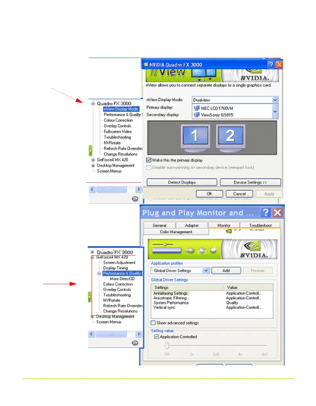 Nvidia Quadro Workstation - Figure A.10 NVIDIA Display Menu Showing both Quadro FX 3000 and Geforce4 MX Graphics Cards