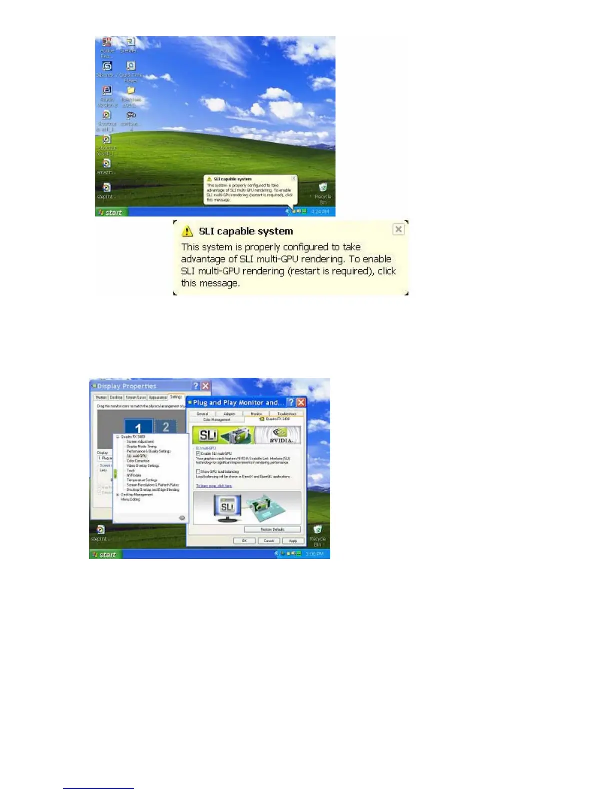 and select Properties/Settings/Advanced/Quadro FX xxxx/SLI multi-GPU). Check the “Enable SLI