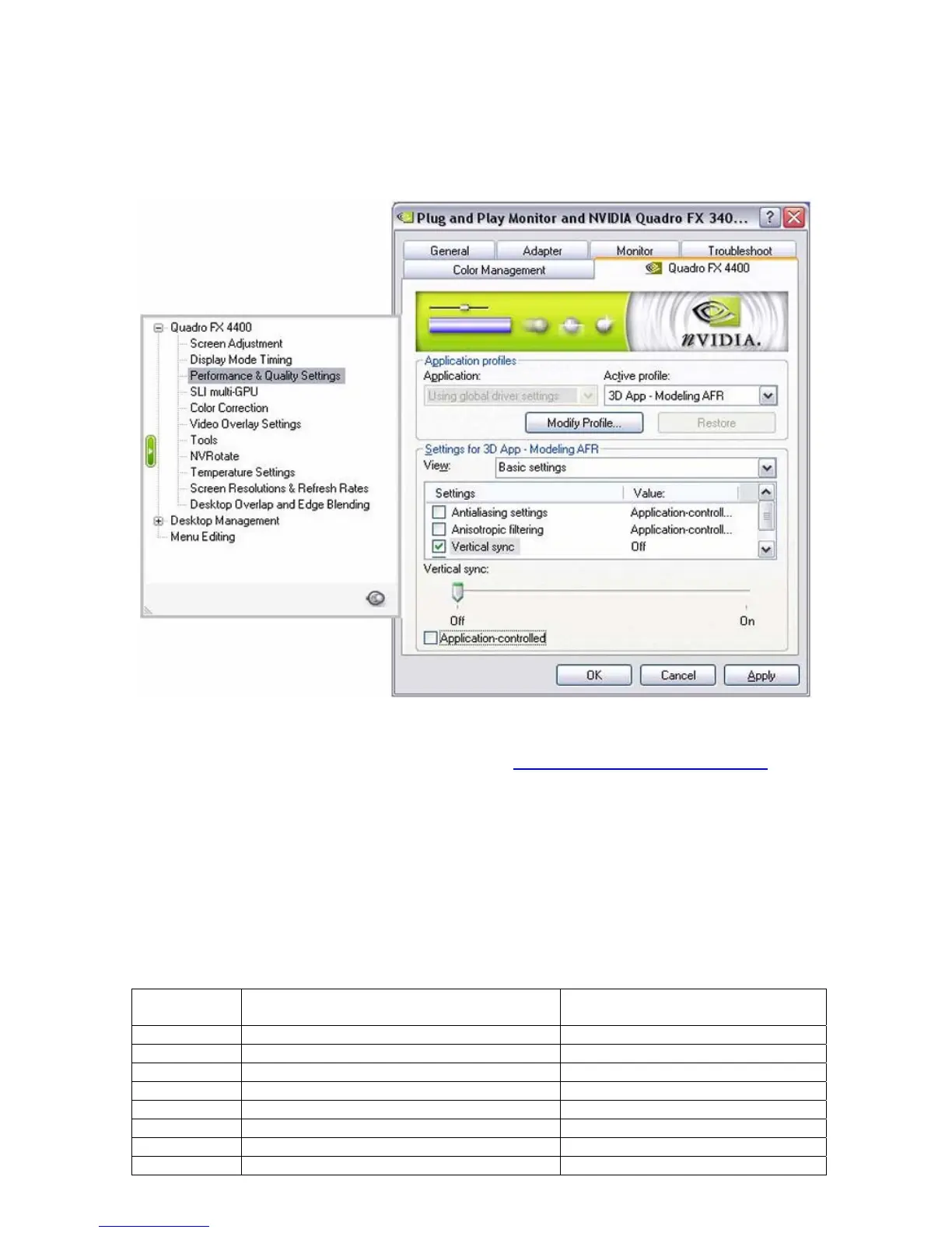 selecting: Properties/Settings/Advanced/Quadro FX xxxx/Performance & Quality Settings. In the