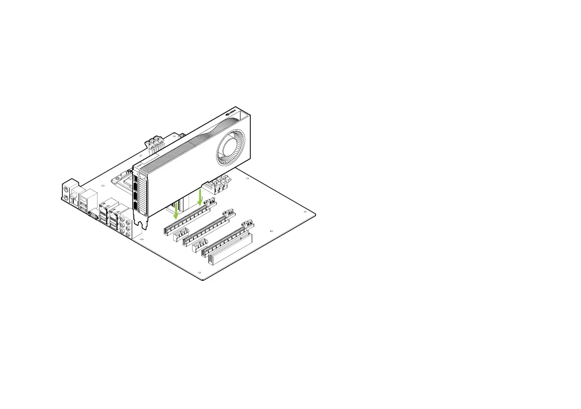 6 将显卡装入主 x16 PCI Express 插槽。轻按显卡直至完全进入卡槽