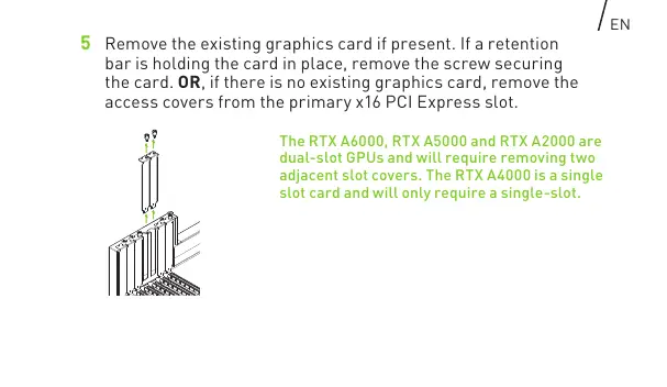 5 Remove the existing graphics card if present. If a retention