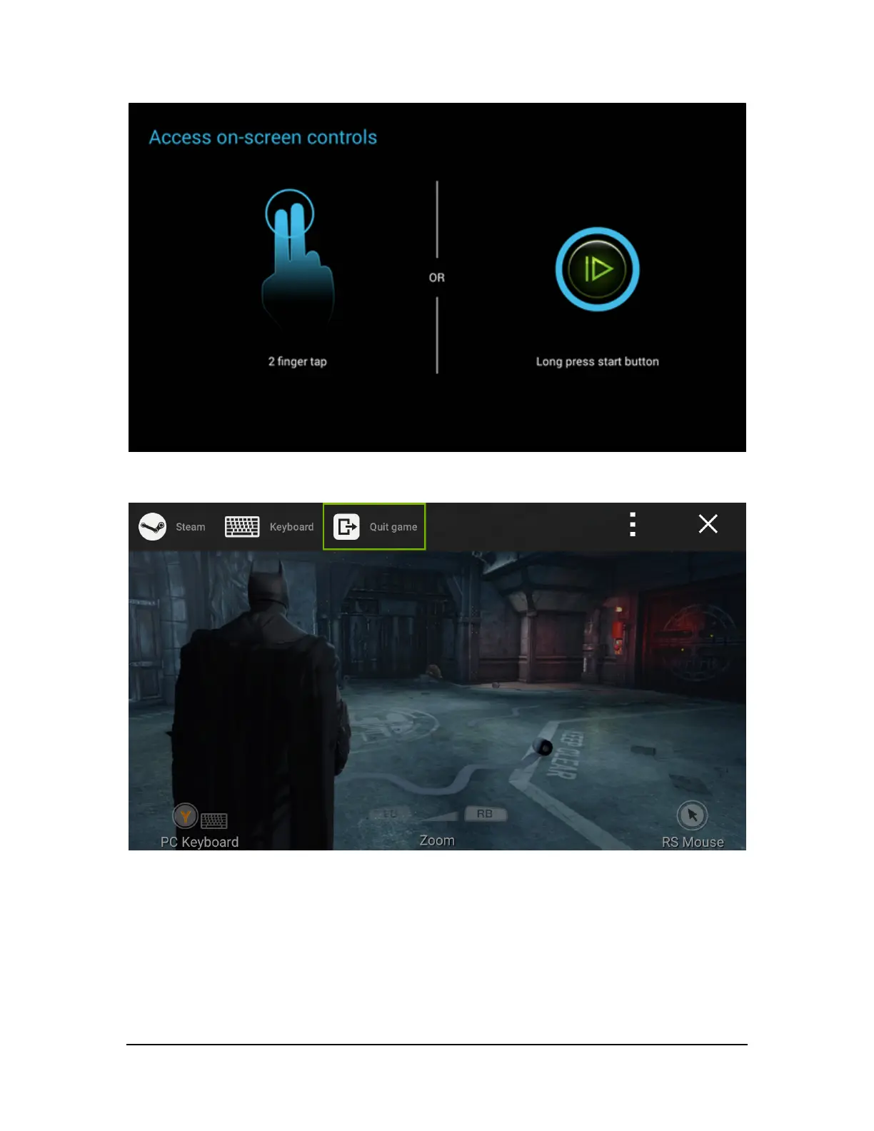 The on-screen controls will bring up a menu screen with four options: Steam, Keyboard, Quit, and Help.