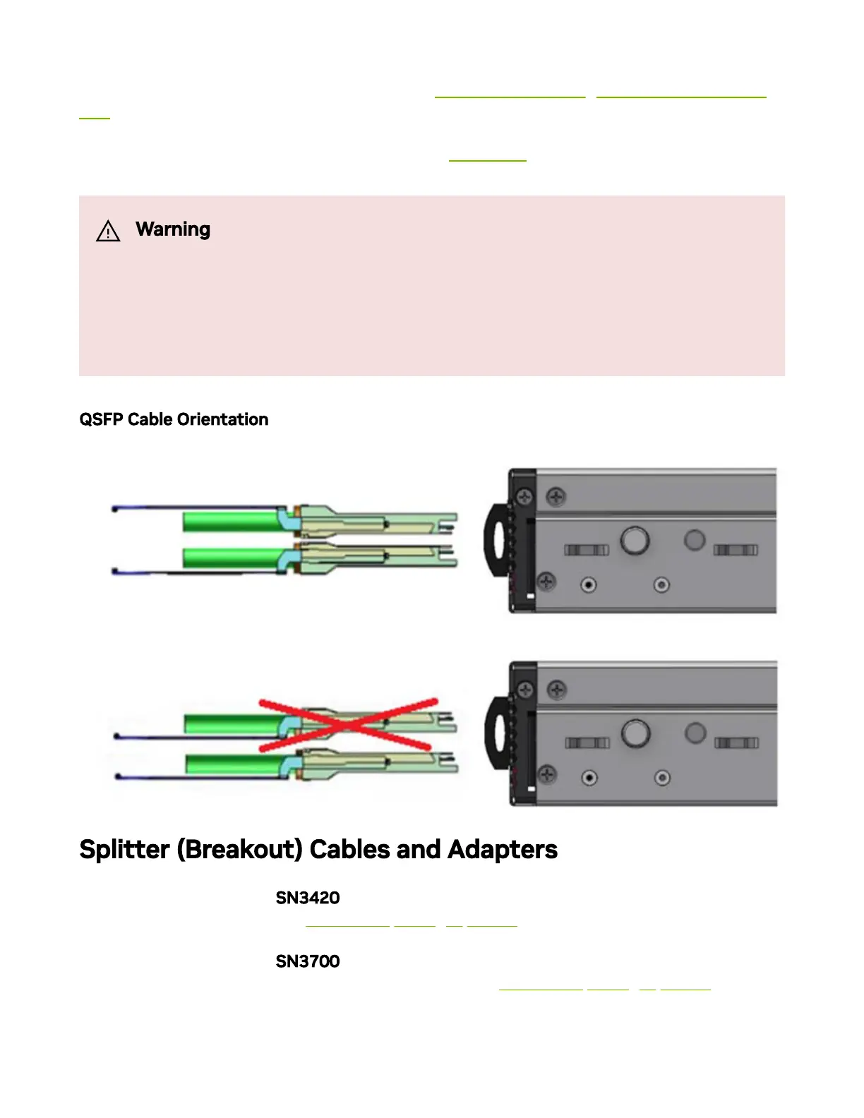 an NVIDIA splitter cable. See "SN3420 Splitting Options” below.
