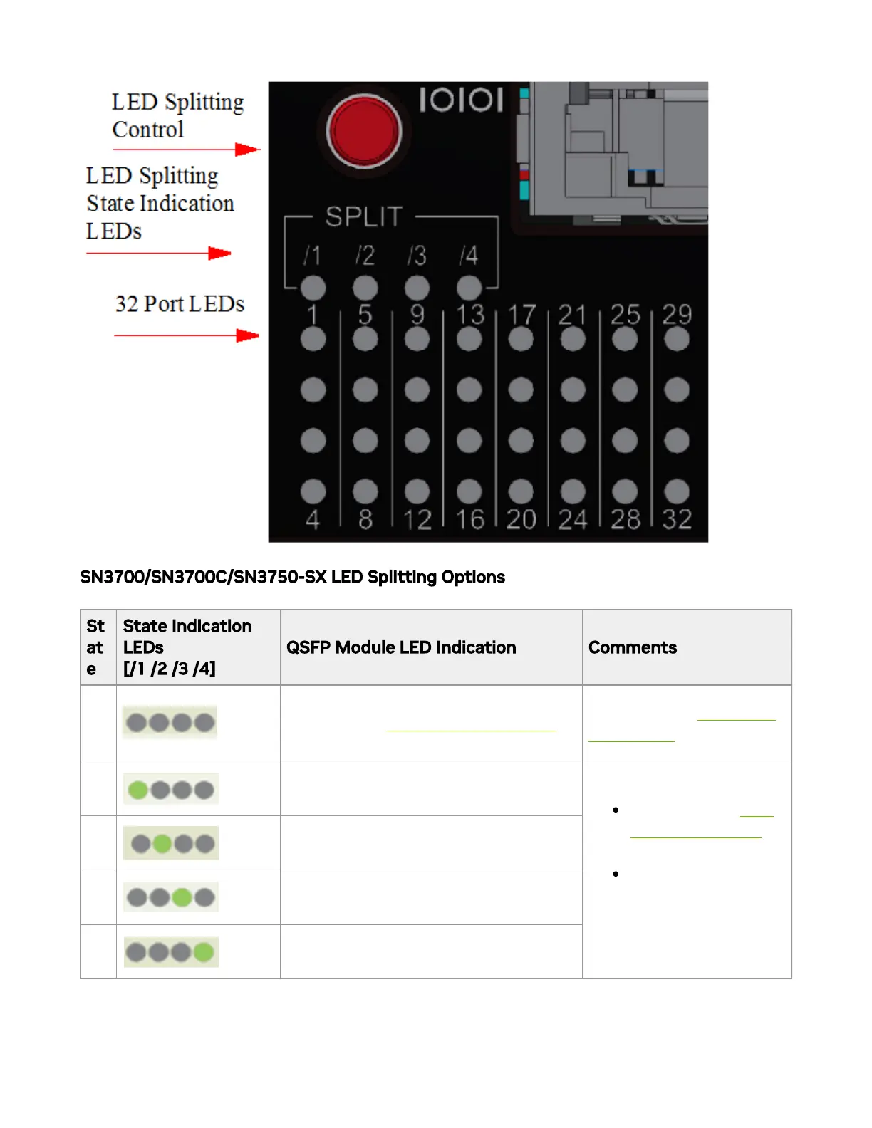 SN3700/SN3700C/SN3750-SX LED Splitting Options