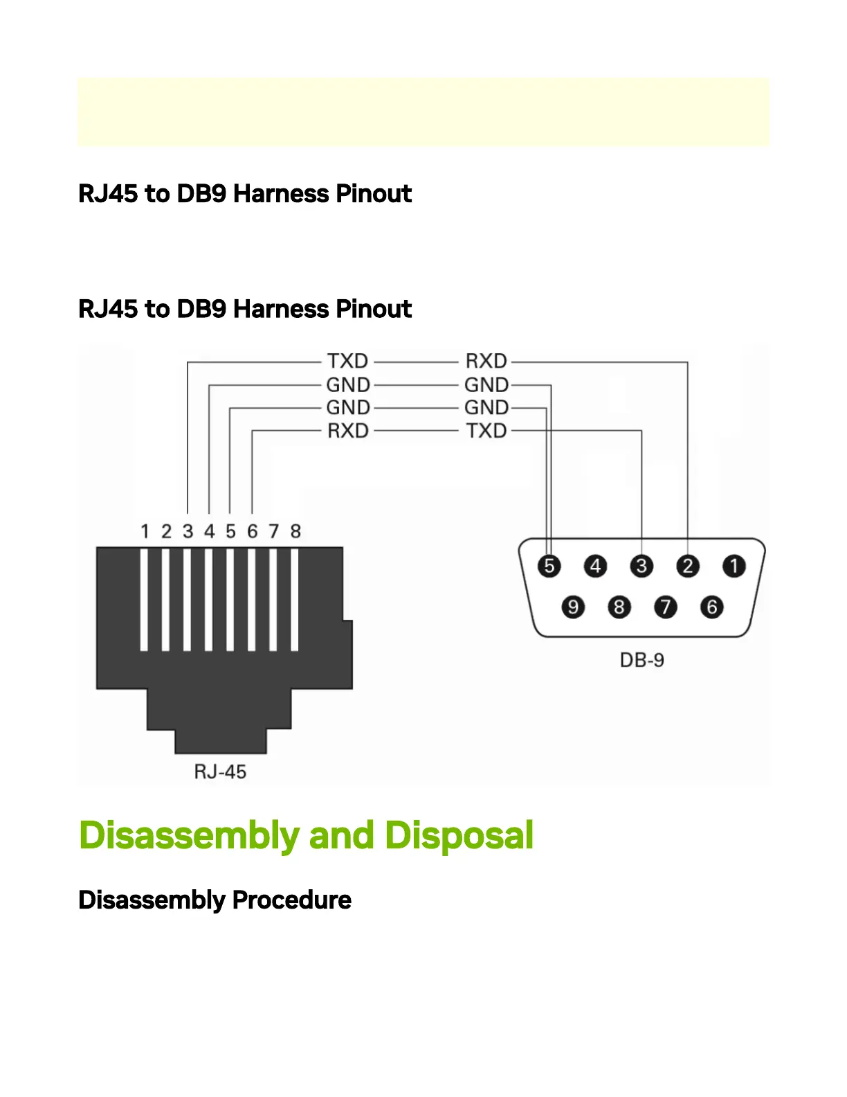 RJ45 to DB9 Harness Pinout