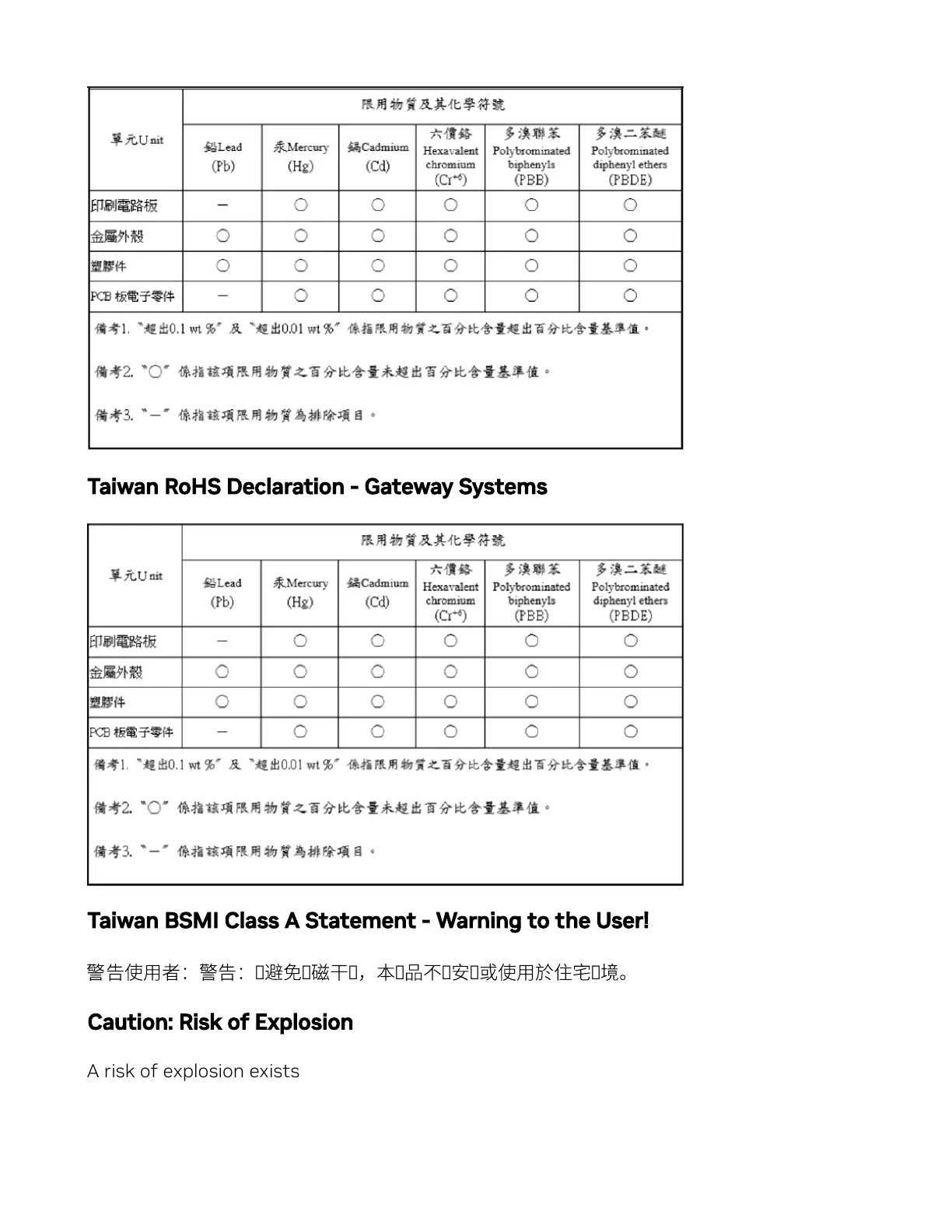 Taiwan RoHS Declaration - Gateway Systems