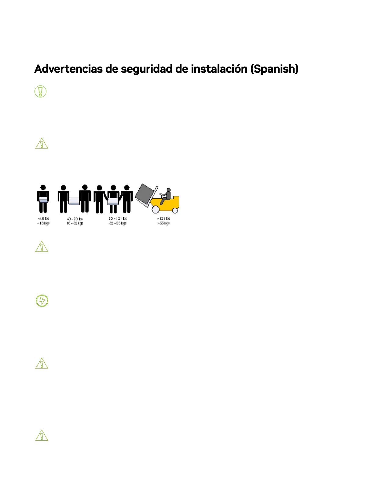 Advertencias de seguridad de instalación (Spanish)