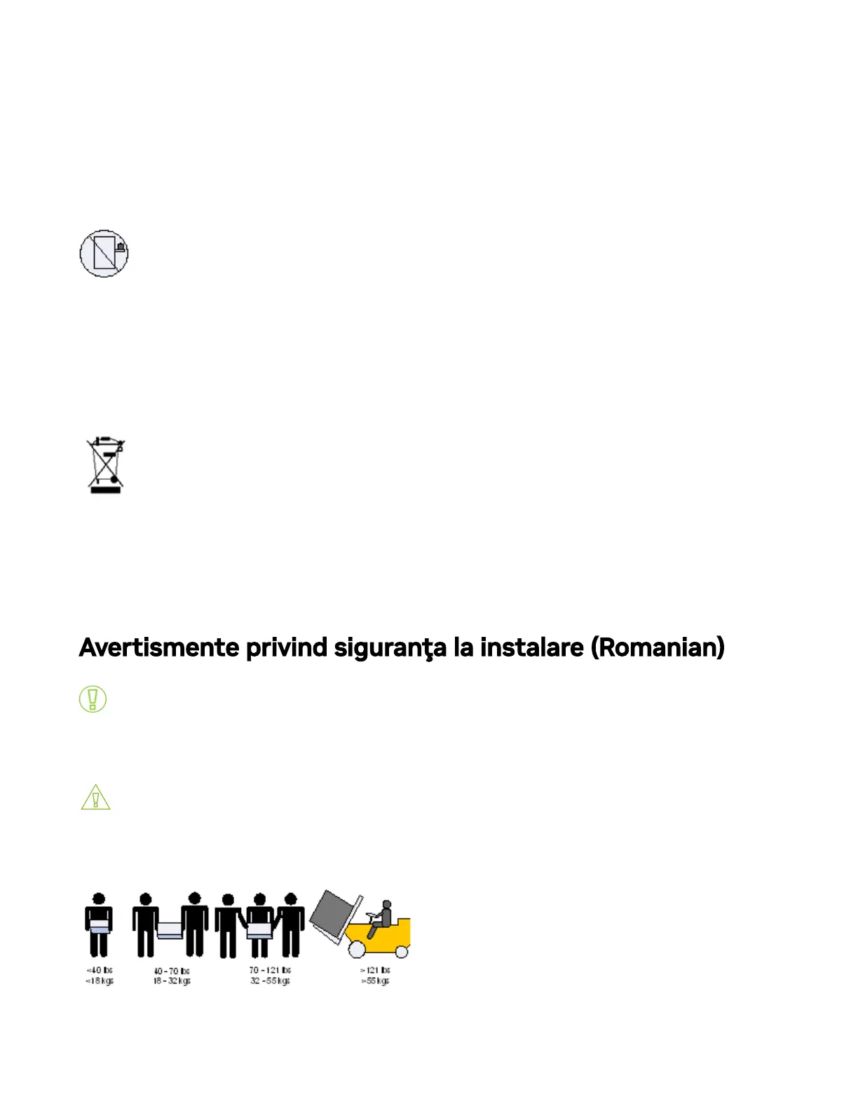 Avertismente privind siguranţa la instalare (Romanian)