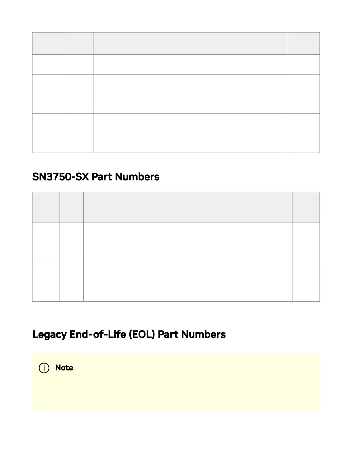 SN3750-SX Part Numbers