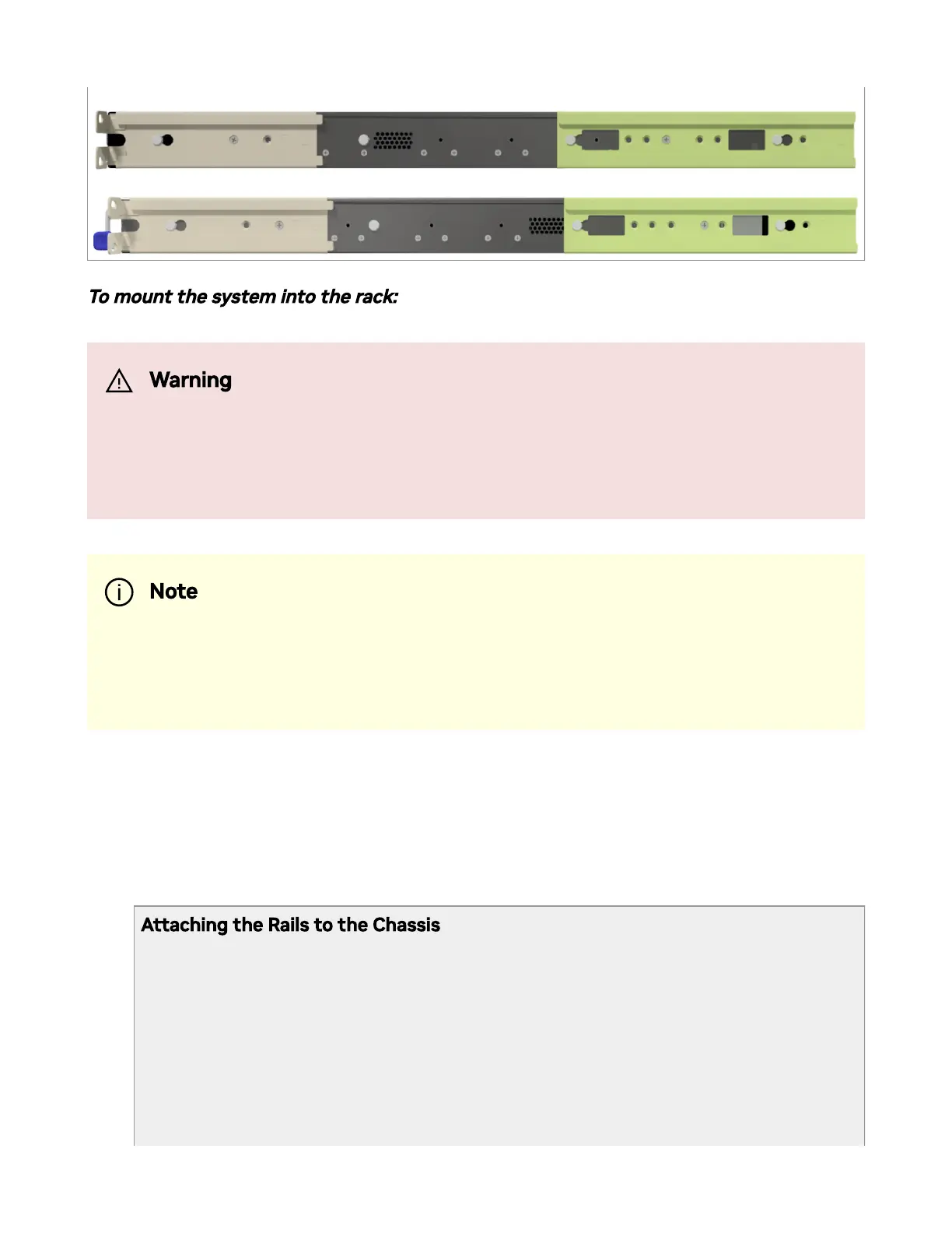 To mount the system into the rack: