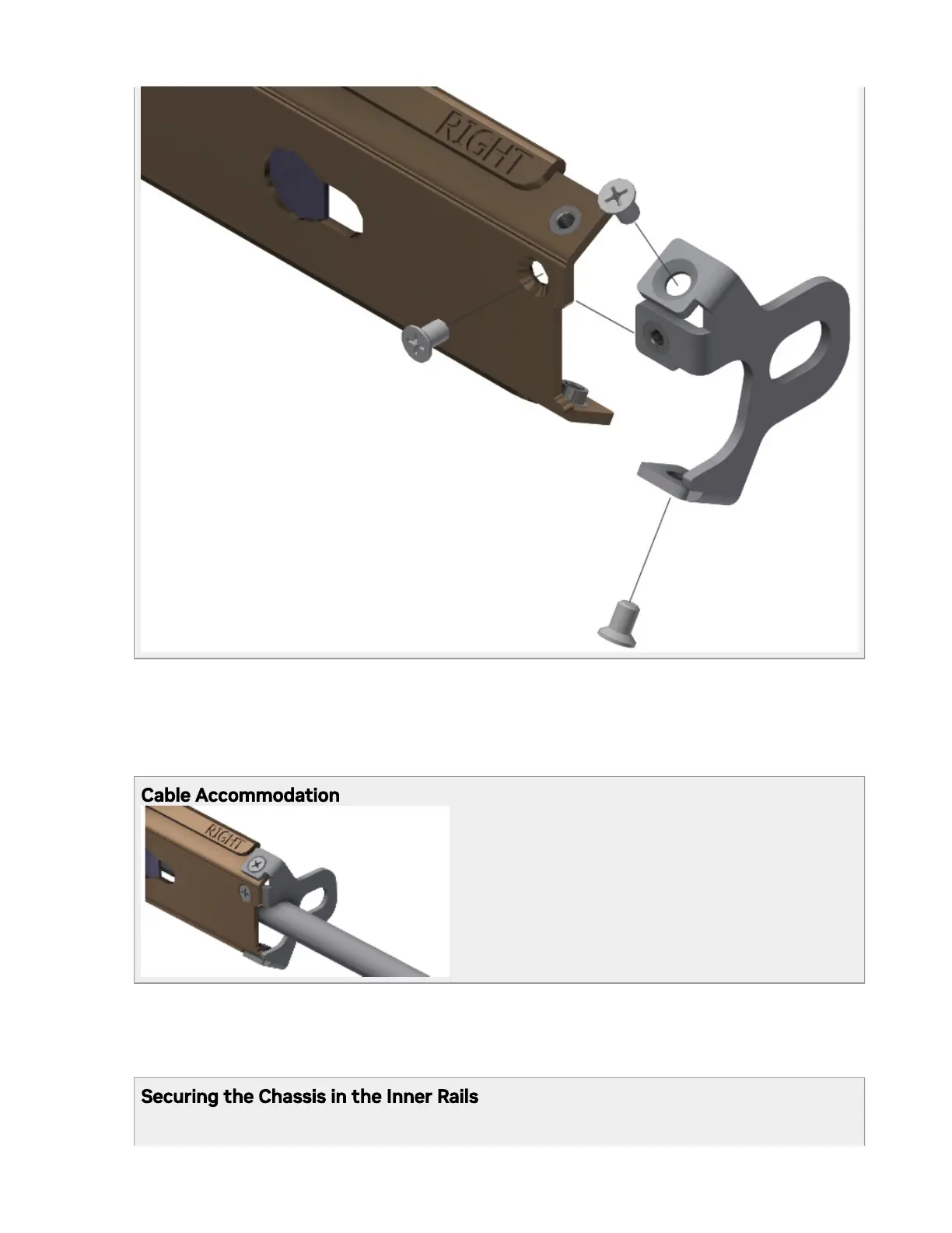 4. Route the power cable through either of the inner rails, and reassemble the brackets