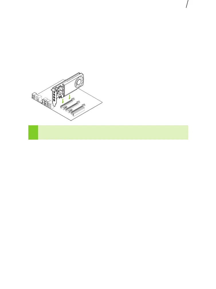 6 Zamontuj kartę w głównym gnieździe PCI Express x16. Delikatnie wciśnij