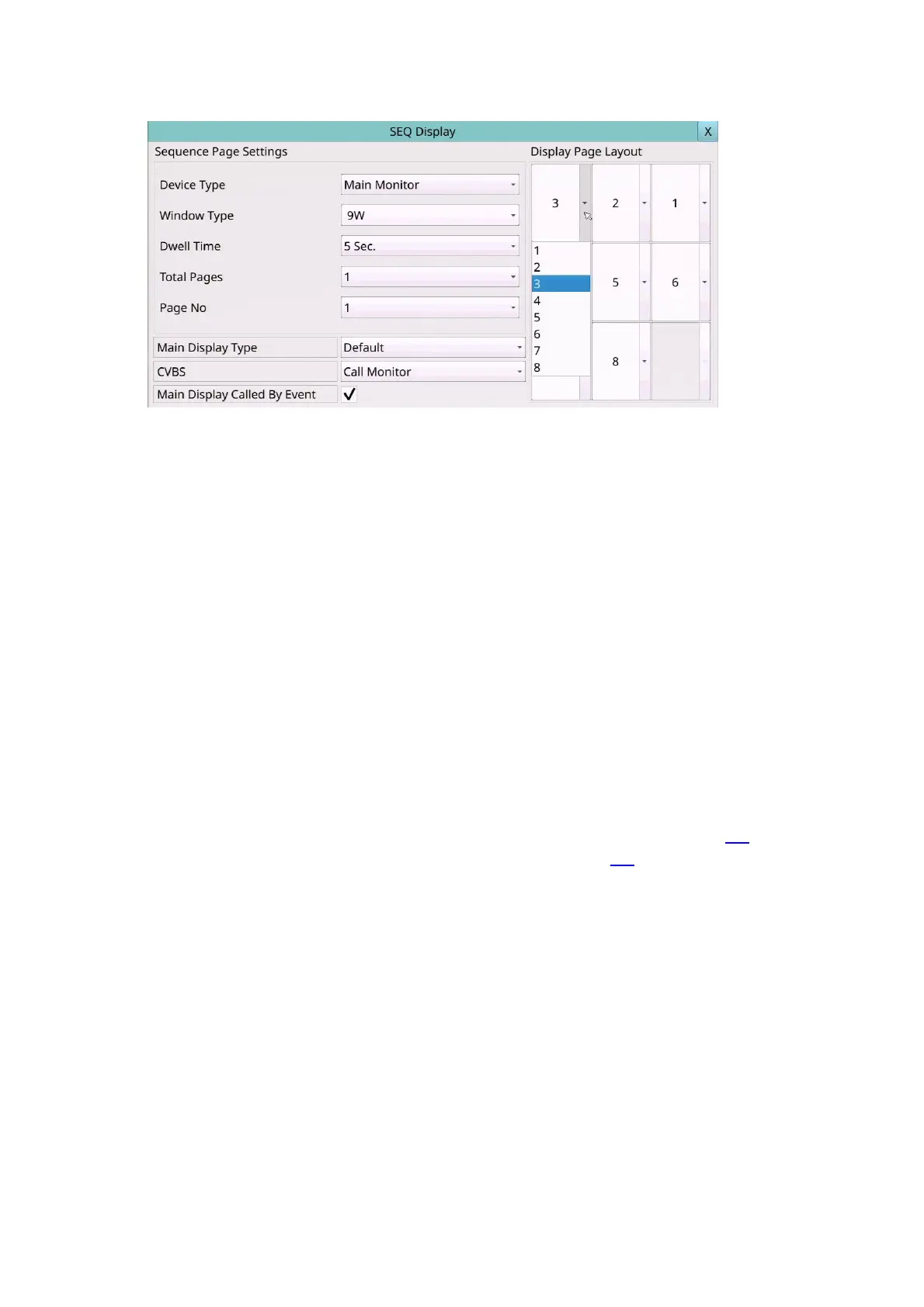 For example, for a 16CH device, the main monitor can be limited to one page at 9W,