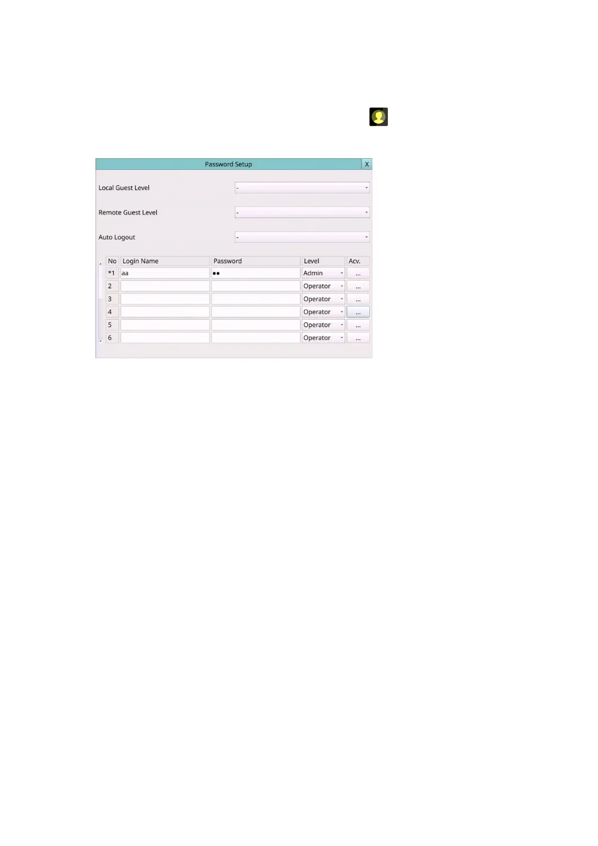 The Password Setup allows the administrator to add new users, delete existing ones,