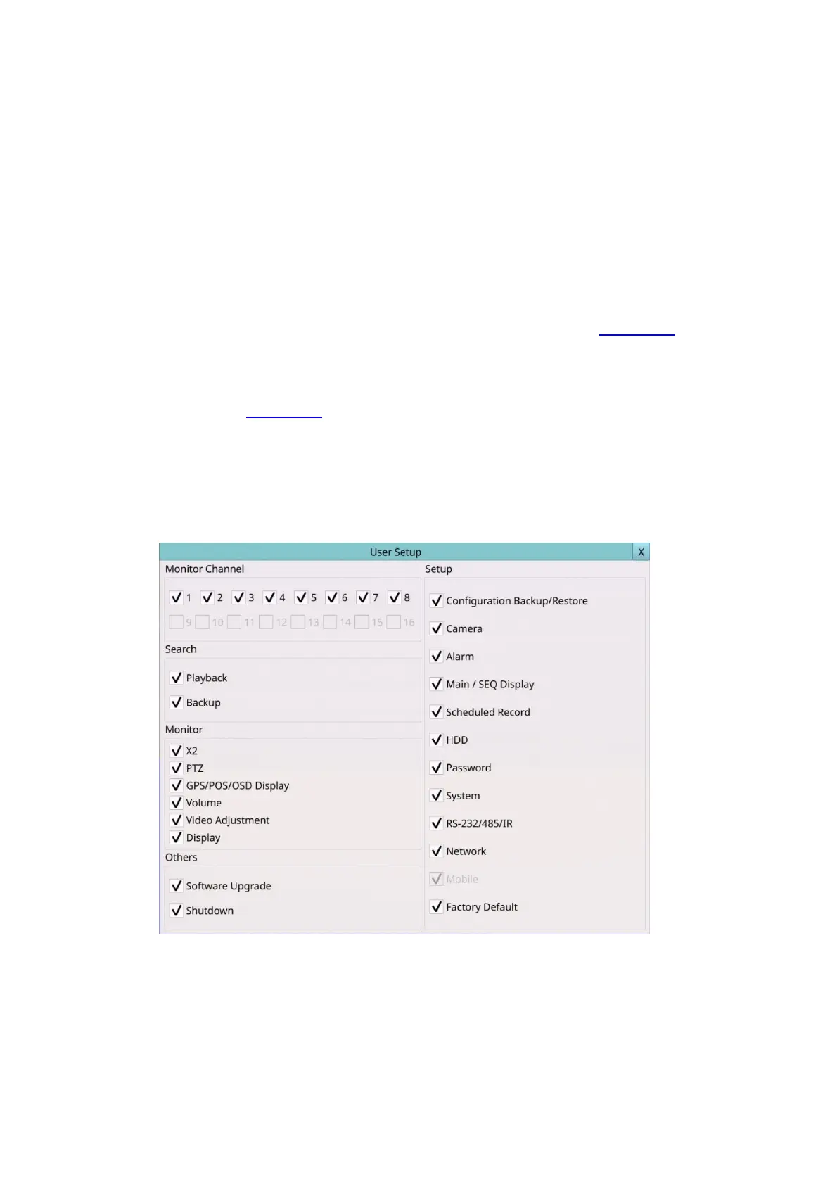 The Advanced User Setup allows the administrator to setup each user’s detailed access