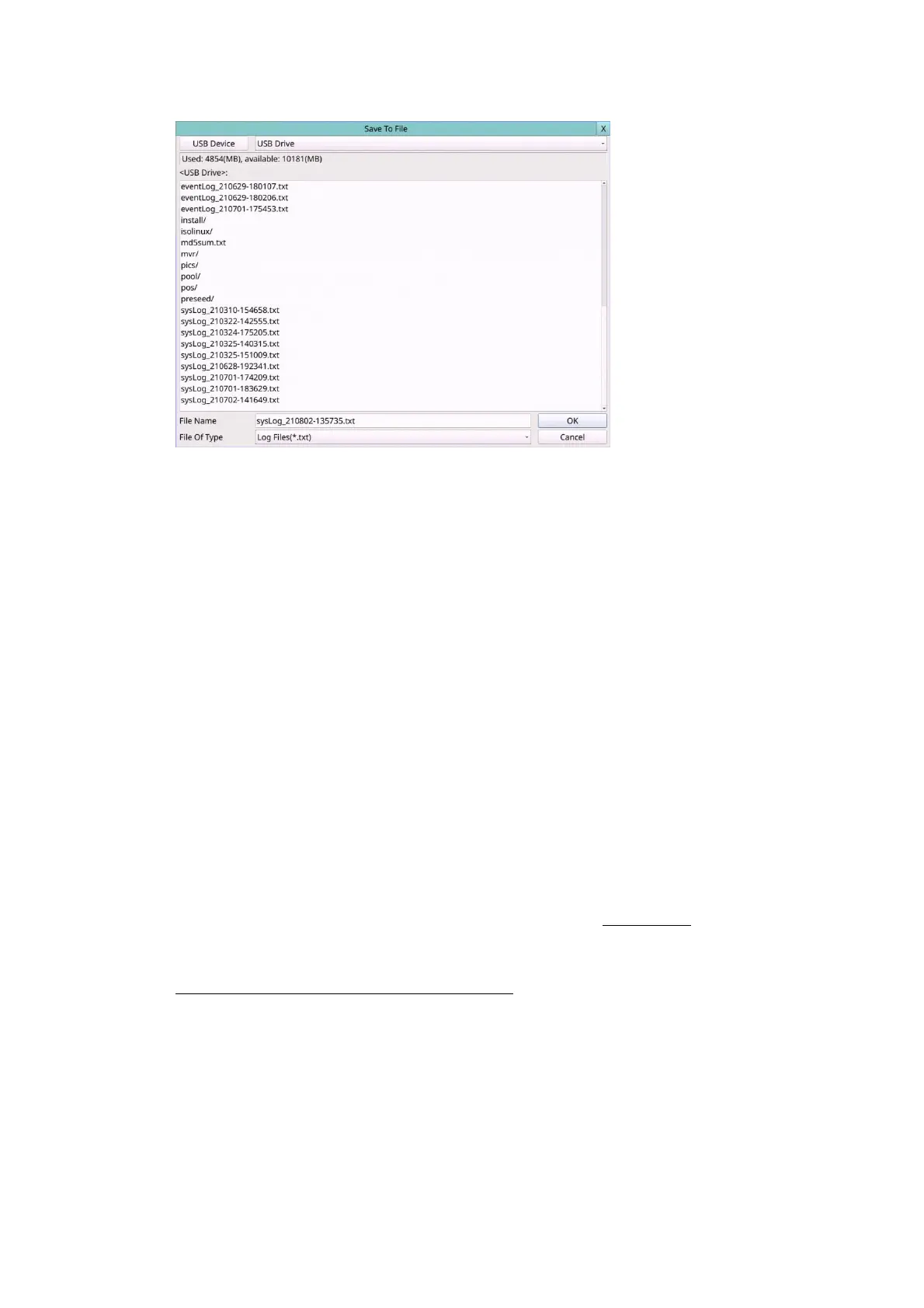 press OK to copy the event log to the selected backup device.