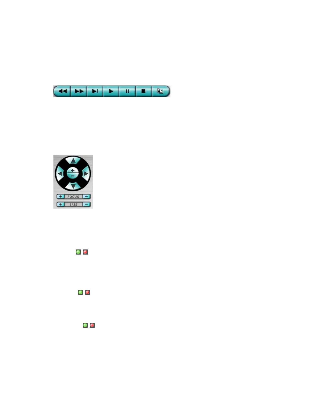 PTZ control panel. If the camera in the focus window is a PTZ camera, these buttons
