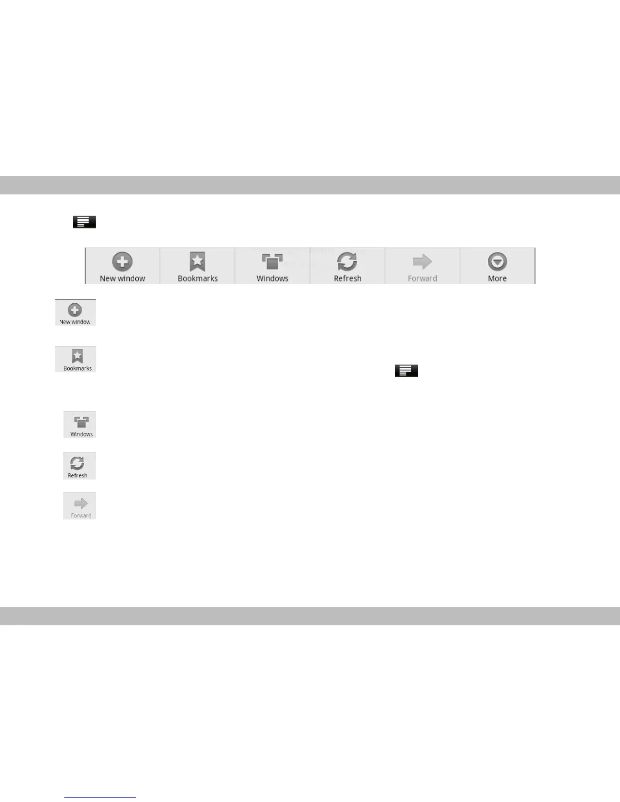 Touch to add bookmarks and view website most visited and web page memorized in