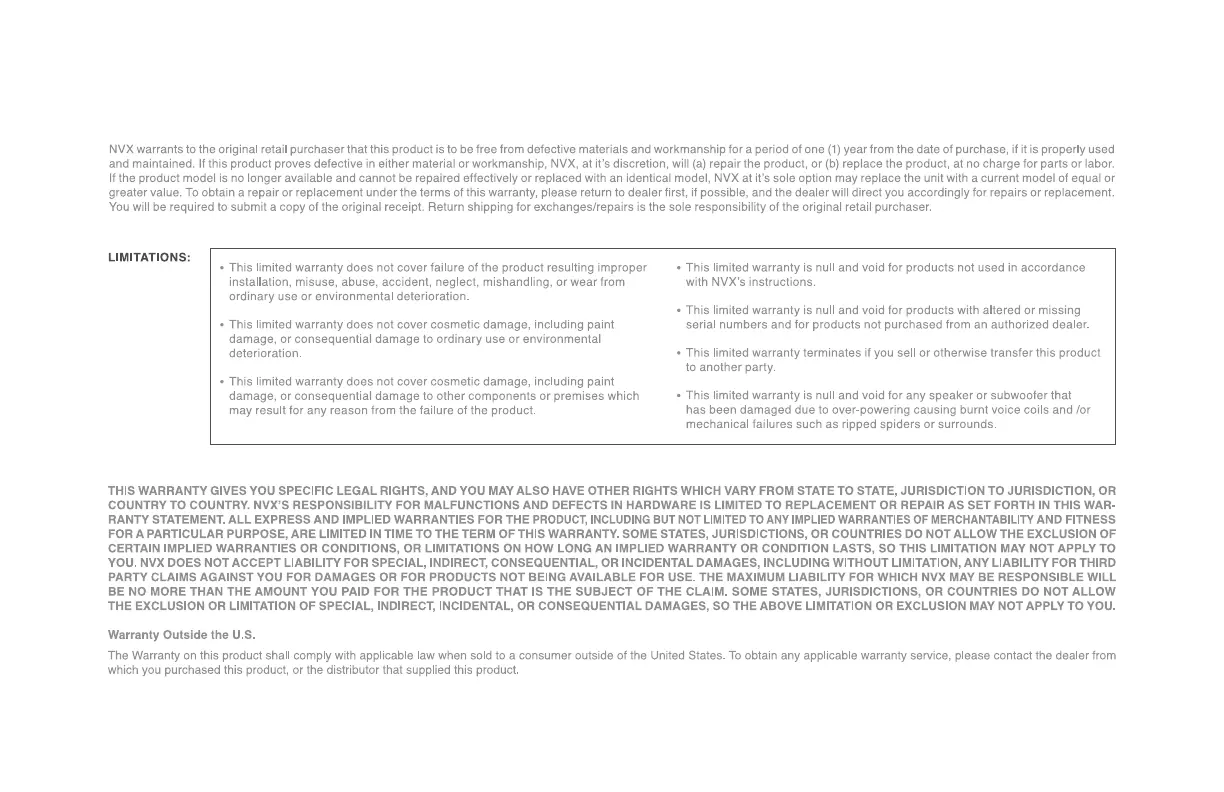 NVX QBSTA - Warranty