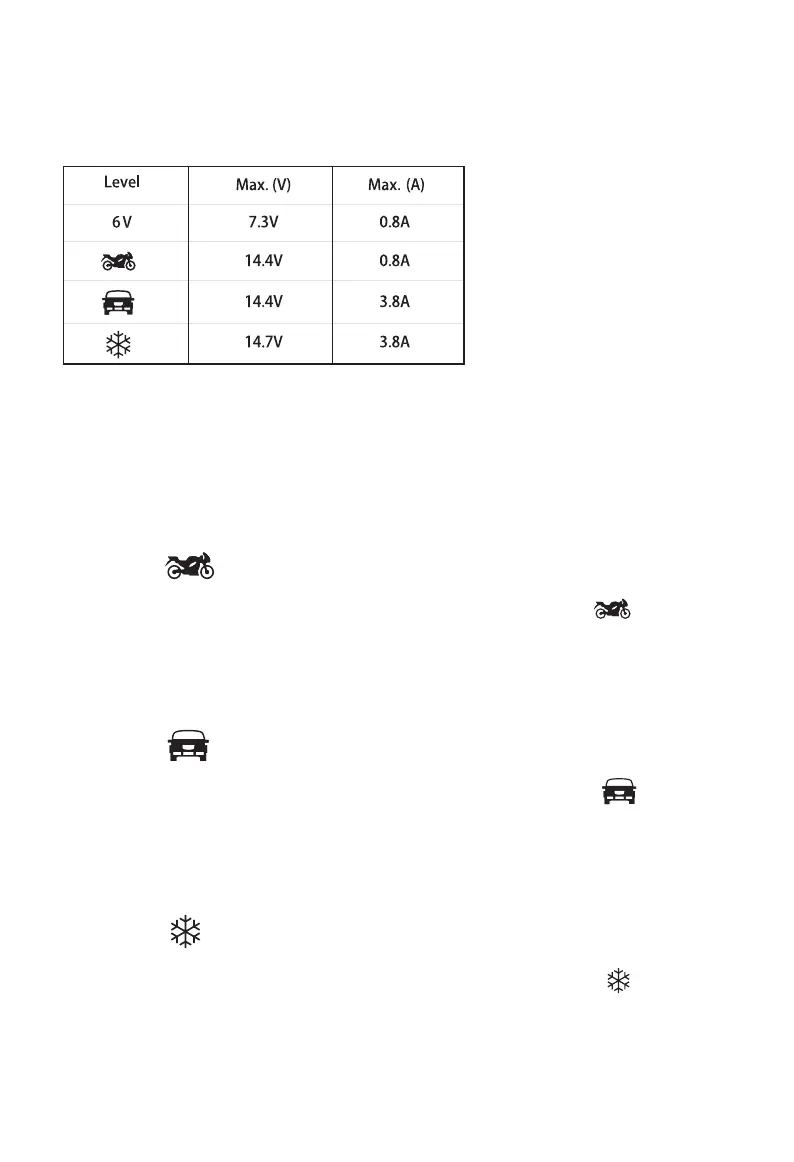 gérées selon le niveau de tension de la batterie. Une fois la batterie branchée et le chargeur connecté