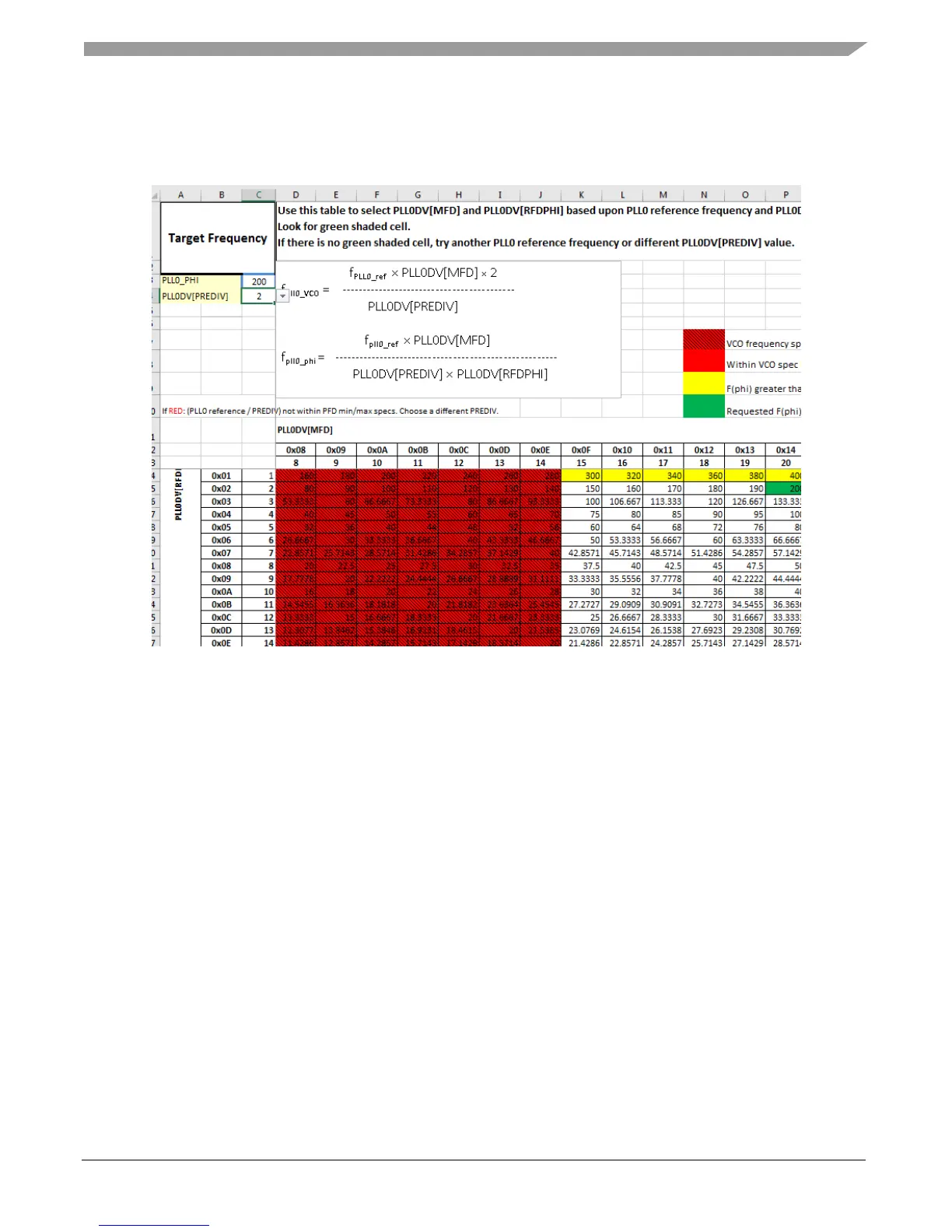 shaded in green; values that exceed the desired frequency, but are within MPC5777C hardware