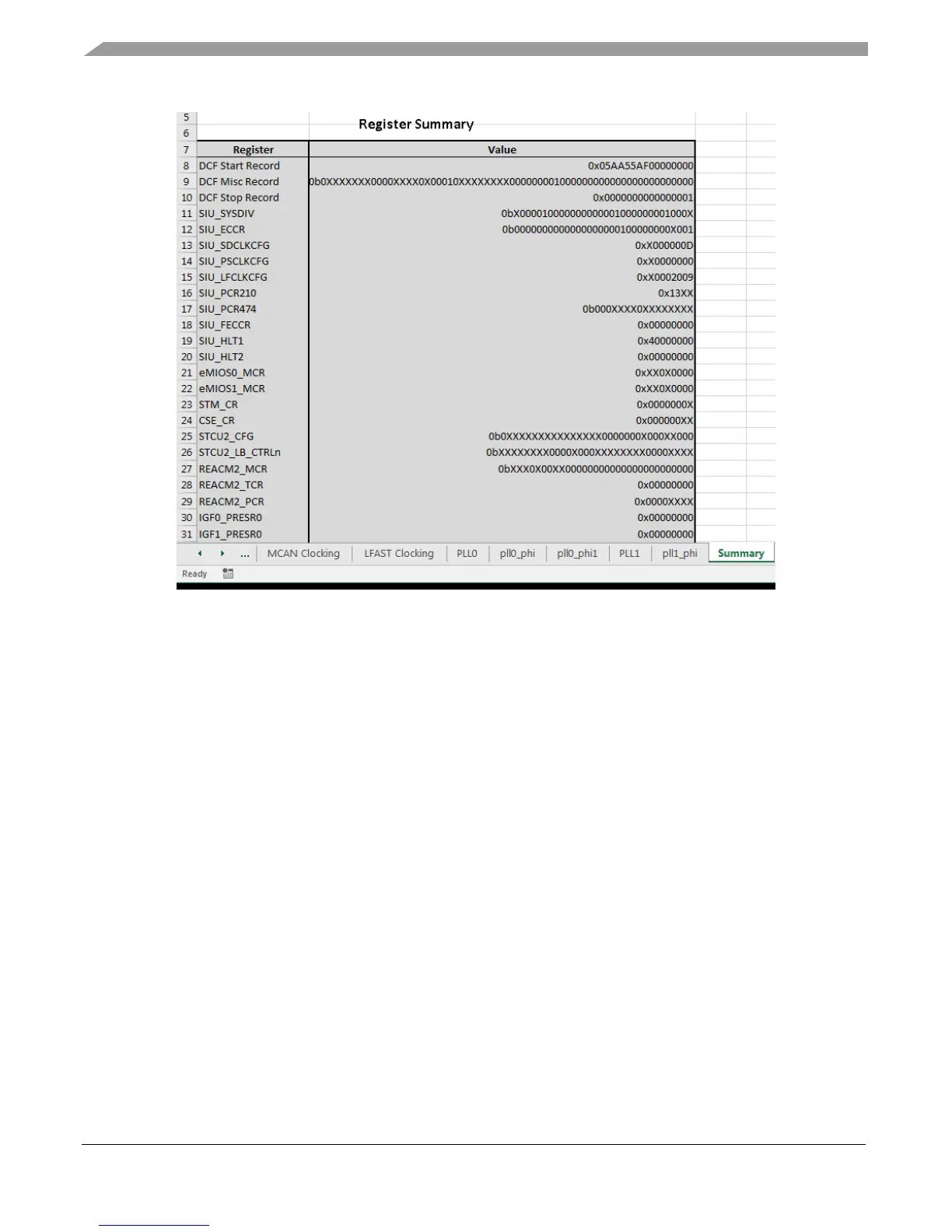 The register values are displayed in either hexadecimal or binary format, where a “0x” prefix represents