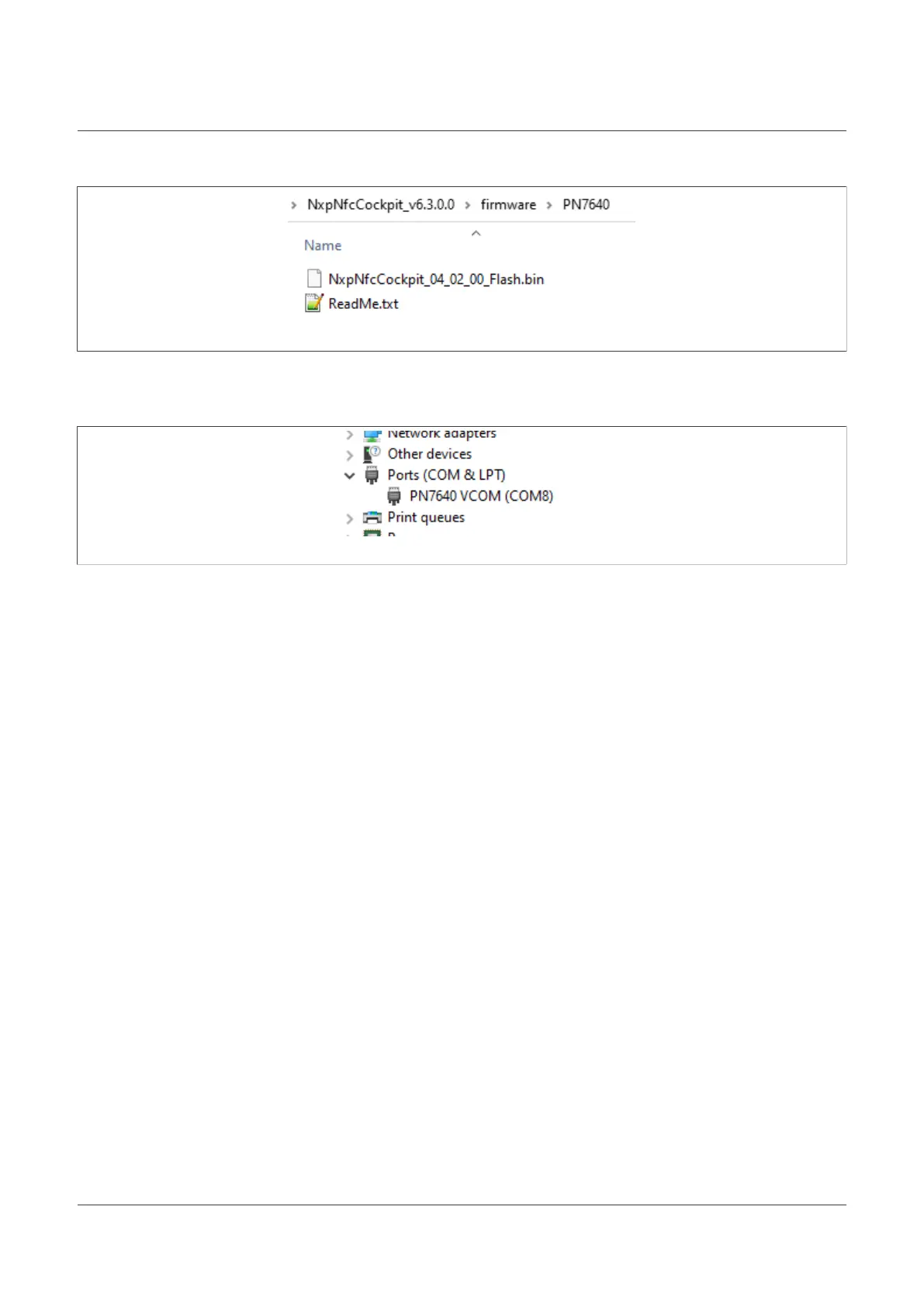 manager. If no VCOM appears and instead the mass storage device PN76xx_DL appears again, make sure that