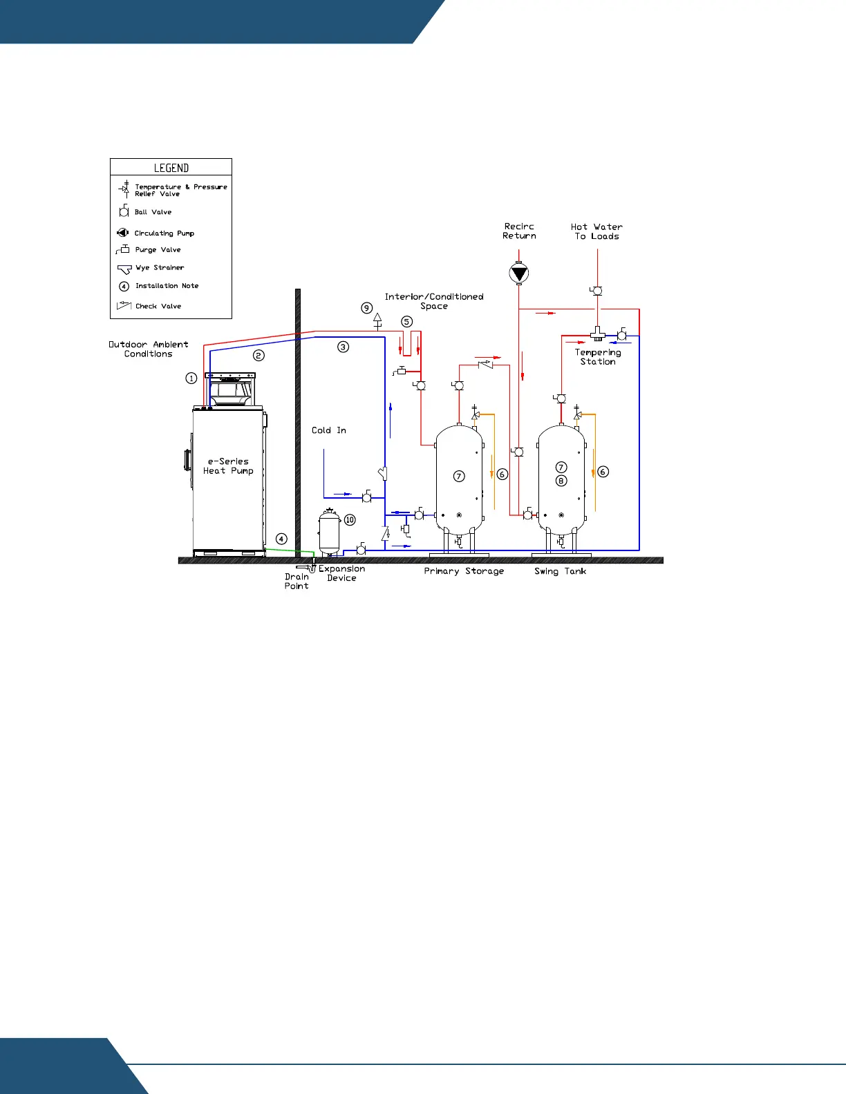 5. Pump circulation between heat pump and storage tanks is required as a part of freeze protection in some conditions. No