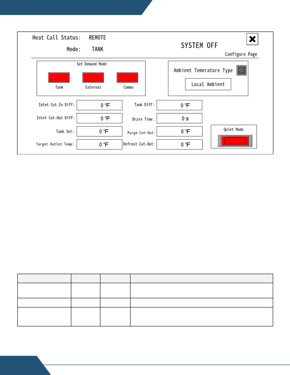 Target Tank Temp 120 100-160 Set to desired primary storage tank temperature.